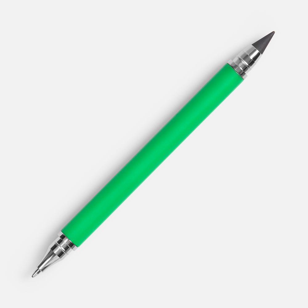 Изготовленный из сплава графита со свинцом долговечный наконечник карандаша не требует заточки, а закончившийся стержень в ручке легко заменить. Оба наконечника закрываются защитными колпачками.