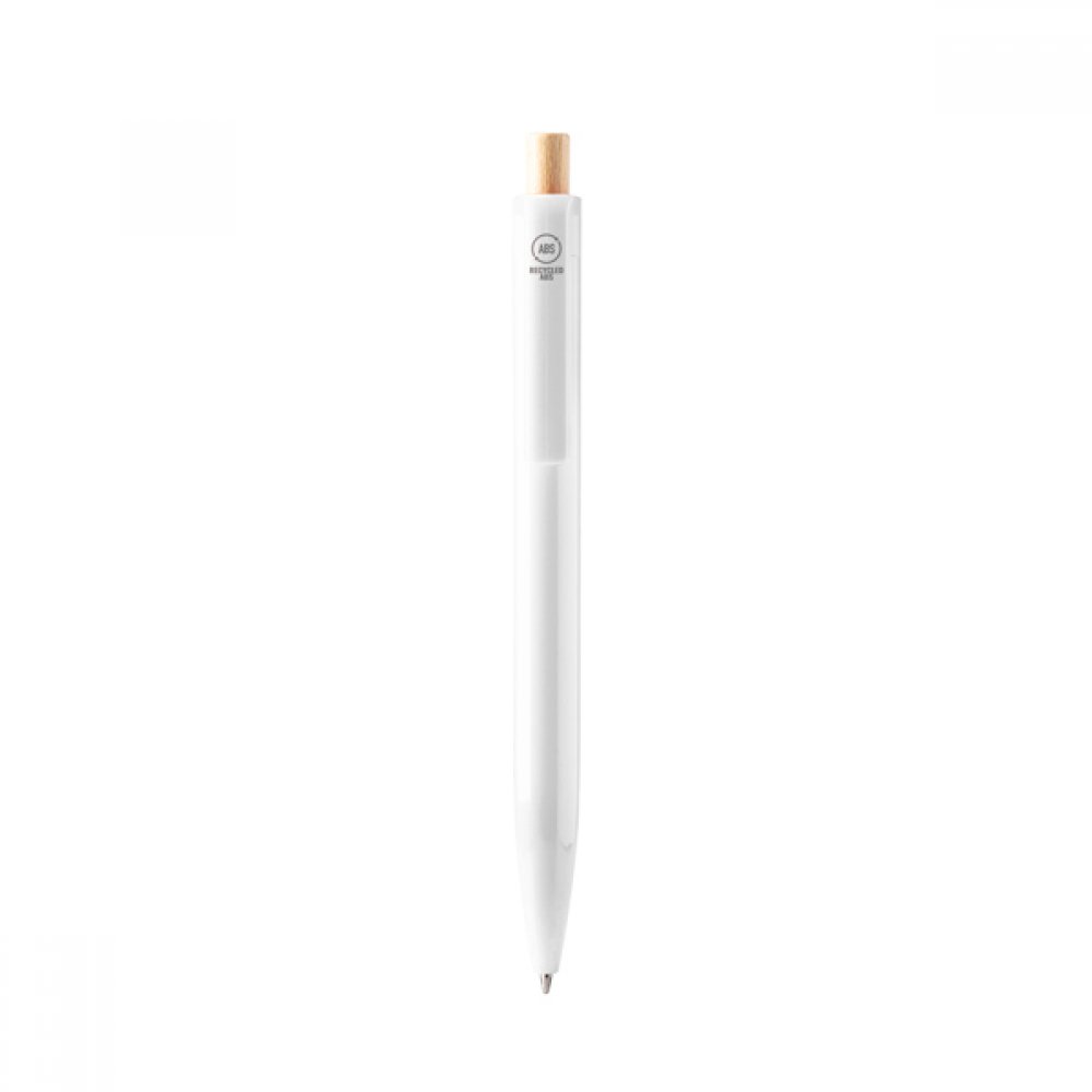 Шариковая ручка из переработанного ABS пластика с бамбуковой кнопкой. Джамбо-заправка синими чернилами.
