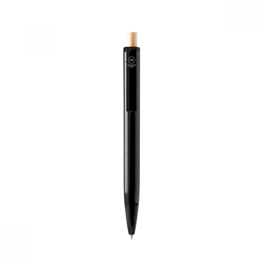 Шариковая ручка из переработанного ABS с бамбуковой кнопкой. Джамбо-заправка синими чернилами.