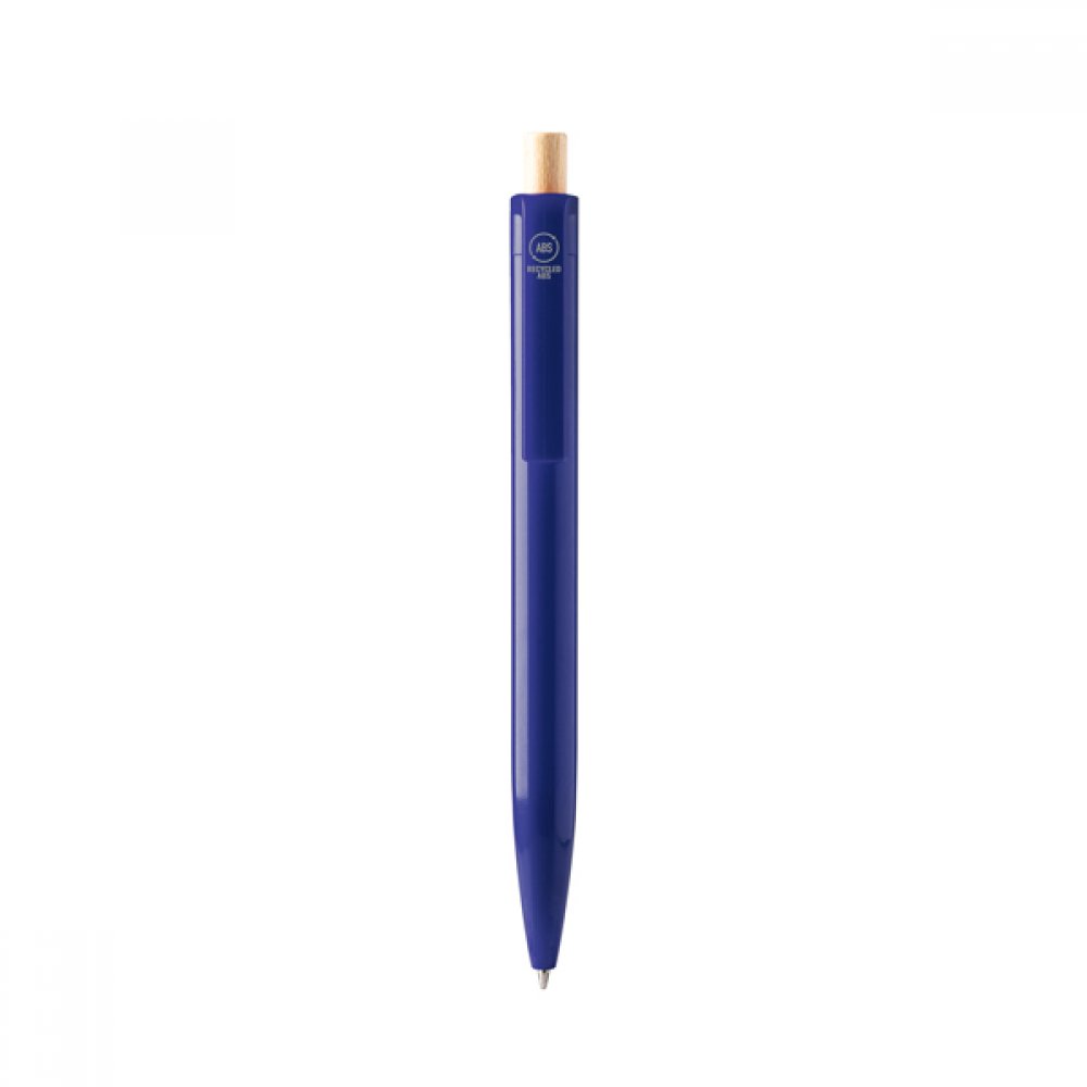 Шариковая ручка из переработанного ABS пластика с бамбуковой кнопкой. Джамбо-заправка синими чернилами.