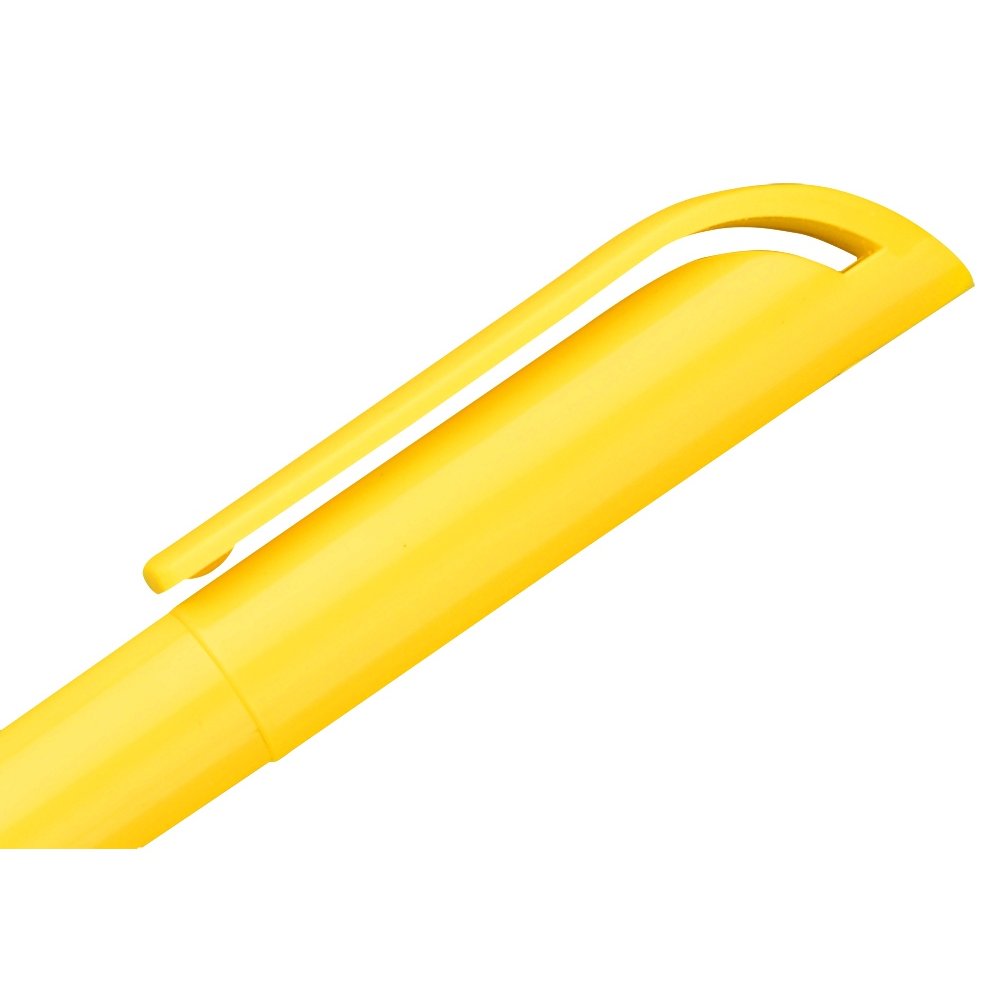 - Яркая стильная шариковая ручка отлично подойдет для создания имиджа компании. На широкий клип можно нанести логотип, а на пластиковый корпус – контактные данные. Надежный поворотный механизм. Различные расцветки.