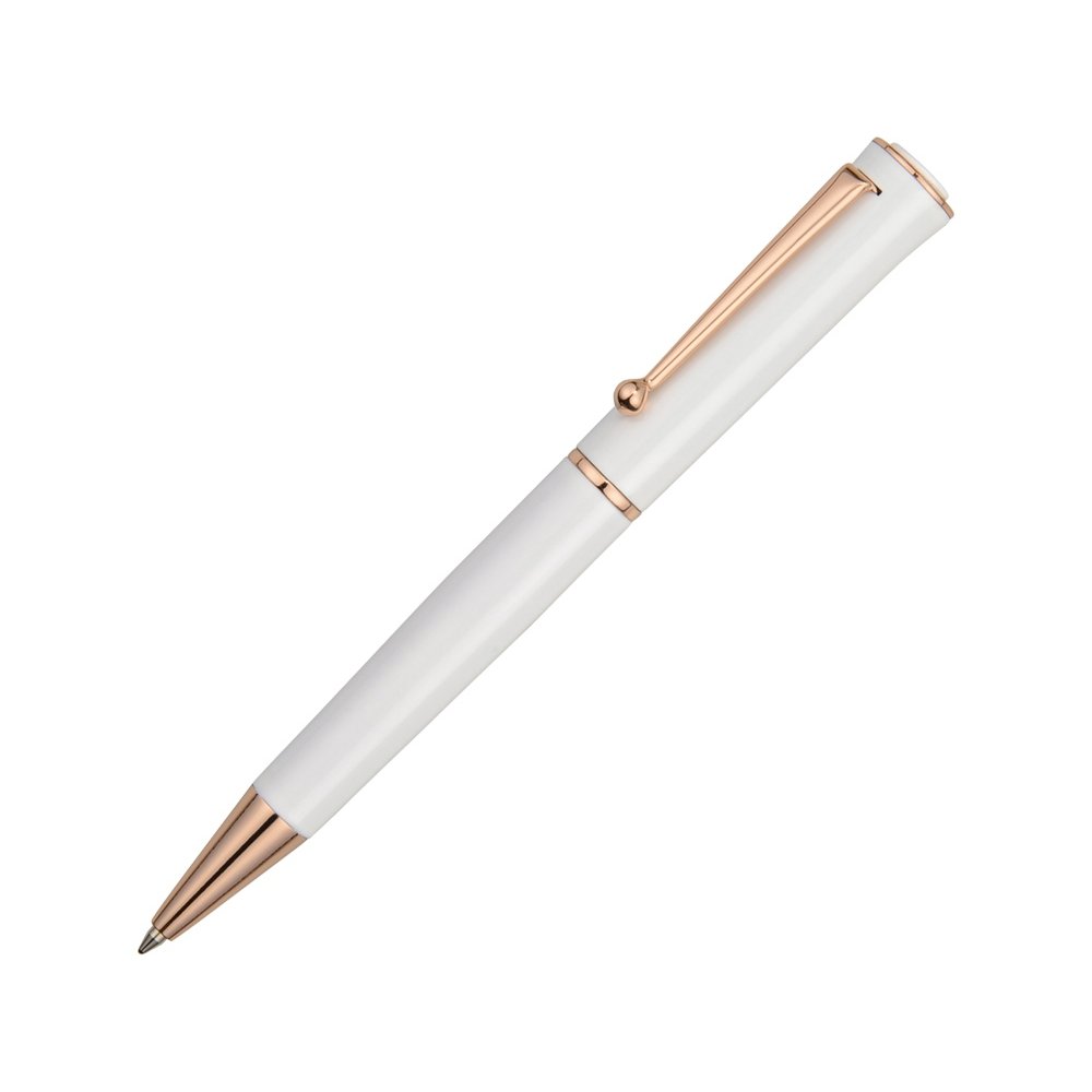 - Шариковая ручка в металлическом корпусе обладает интересным, притягательным дизайном. Сочетание белоснежного и нежно-розового цветов придется по вкусу стильным деловым леди.