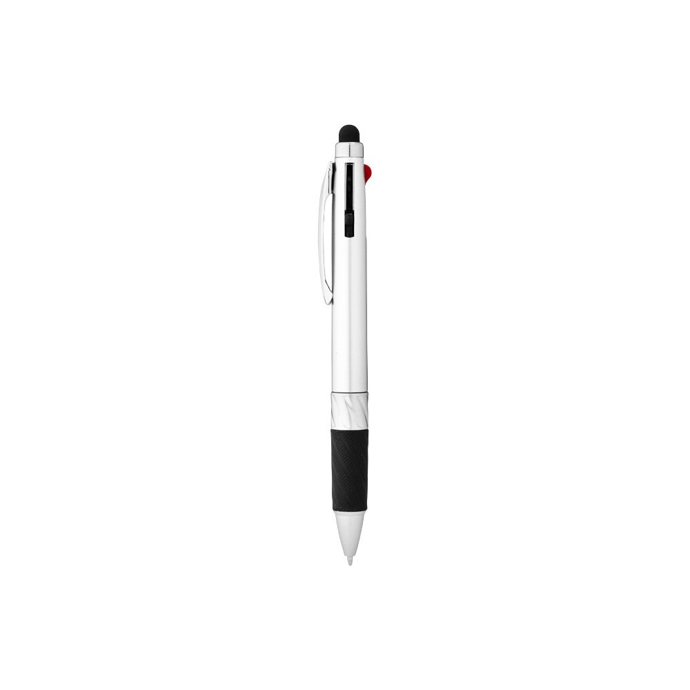- Функциональная шариковая-ручка стилус порадует человека, который идет в ногу со временем. С одного конца это трехцветная шариковая ручка с нажимным механизмом, с другого – универсальный стилус для современных медиаустройств.