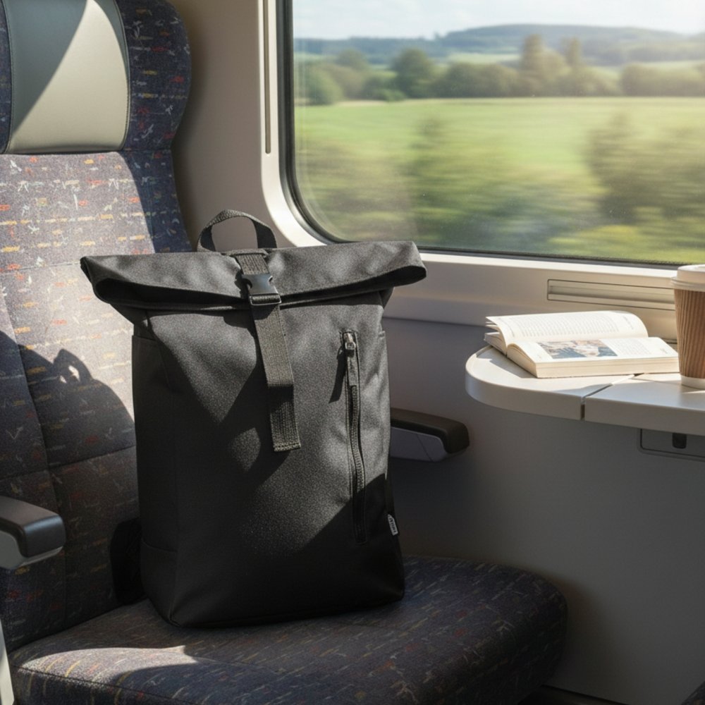 - Городской ролл-топ рюкзак ARGON из переработранного полиэстера RPET. Одно основное отделение закрываеся на регулируемый по длине ремень c пряжкой-фастексом. На передней стенке вертикальный карман на молнии-тракторе. Два боковых открытых кармана. Короткая ручка и уплотнённые регулируемые по длине плечевые ремни. Уплотнённая задняя стенка. Размер: 27,5*44(52,5)*16cm Плотность: 600D Рекомендуемая максимальная нагрузка: не более 7 кг. Вместимость: 17 л.