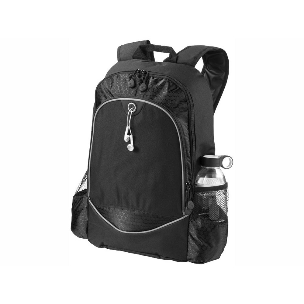 - Рюкзак Benton для ноутбука 15 дюймов. Основное отделение на молнии подходит для большинства ноутбуков 15 дюймов и включает отделение с мягкой подкладкой для iPad или планшета. Большой передний карман на молнии с органайзером и держателем для наушников. Два боковых кармана. Усиленная ручка и регулируемые плечевые ремни с мягкими подкладками. Принадлежности не включены. Полиэстер 600D.