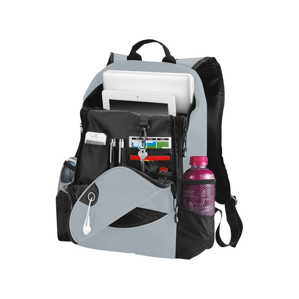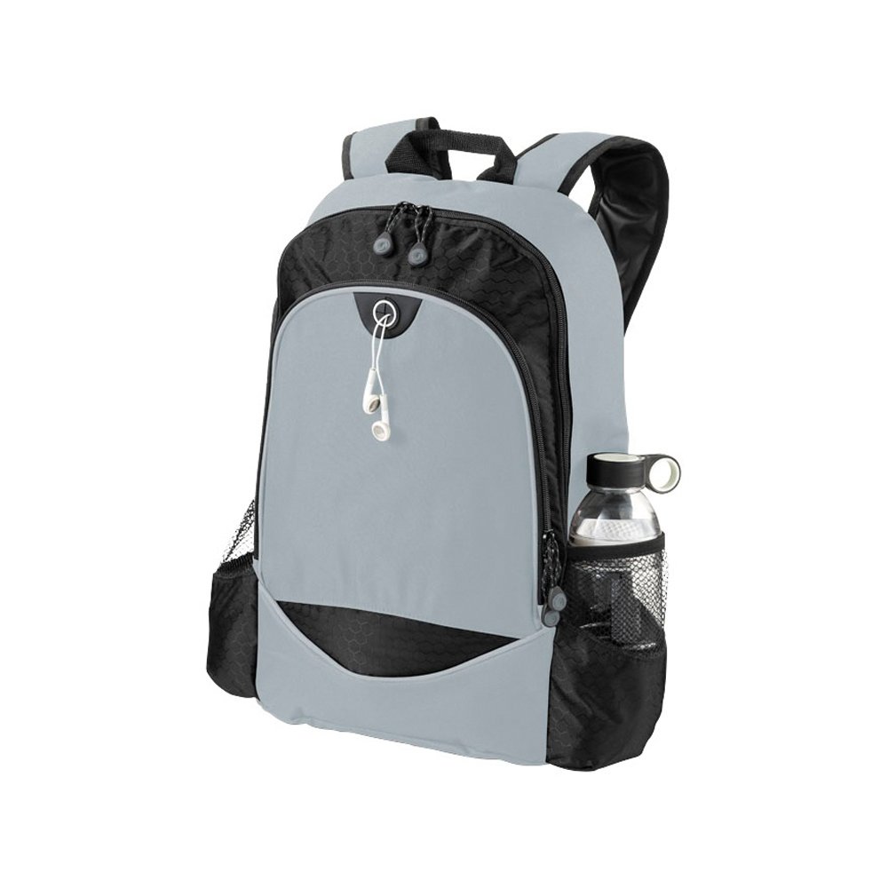 - Рюкзак Benton для ноутбука 15 дюймов. Основное отделение на молнии подходит для большинства ноутбуков 15 дюймов и включает отделение с мягкой подкладкой для iPad или планшета. Большой передний карман на молнии с органайзером и держателем для наушников. Два боковых кармана. Усиленная ручка и регулируемые плечевые ремни с мягкими подкладками. Принадлежности не включены. Полиэстер 600D.