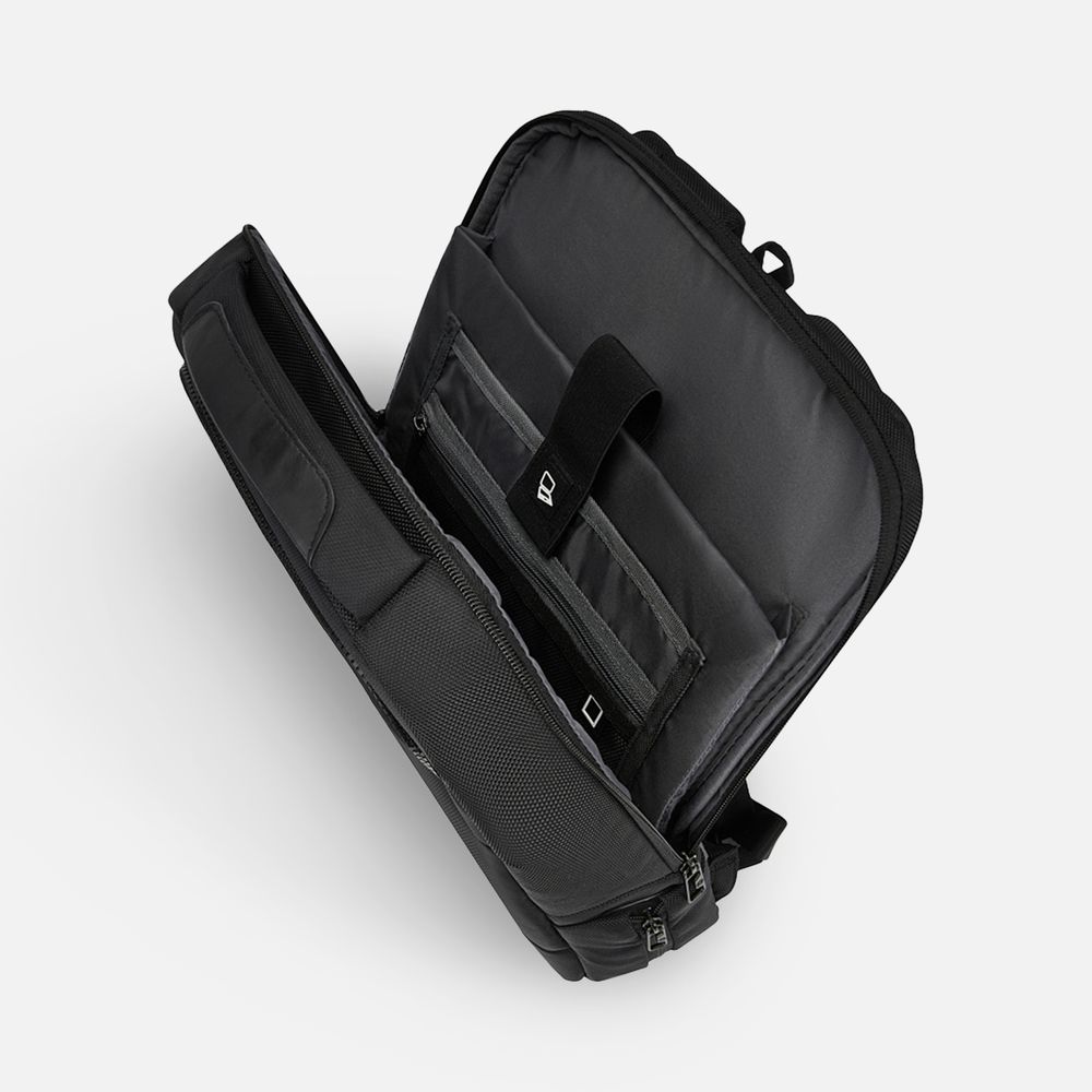 Рюкзак вмещает ноутбук диагональю до 15,6 дюймов, а также планшет, для которого предусмотрен отдельный карман на молнии. Довольно большой объем и продуманная система хранения позволяют переносить все важные документы и канцелярию, помимо основной техники.- Объем 19 л