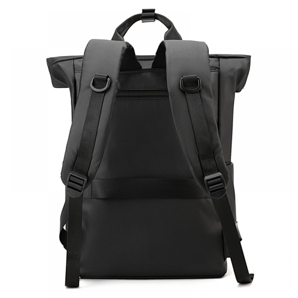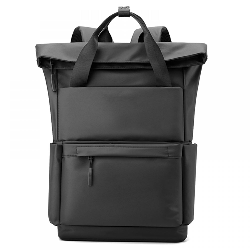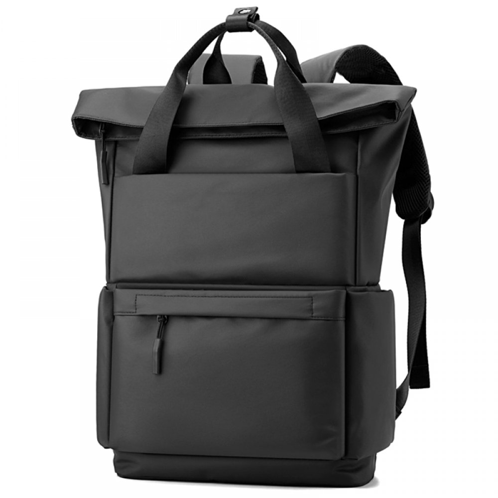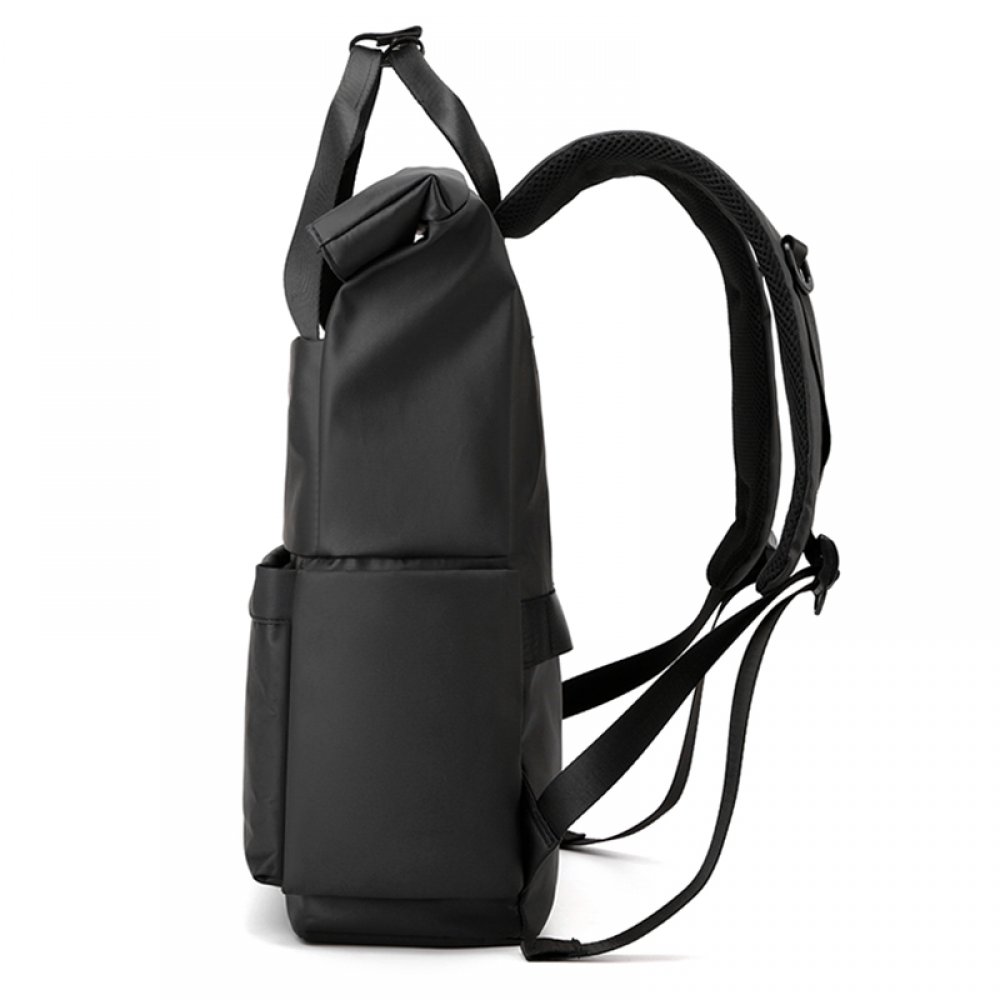- Универсальный ролл-топ рюкзак EXECUTE. Его особенности - графичный дизайн и множество карманов в сочетании с высококачественной искусственной кожей. Одно большое отделение закрывается на молнию. Внутри уплотнённый карман для ноутбука до 15,6 дюймов и карман на молнии для мелочей и ЭКСКЛЮЗИВНАЯ ОПЦИЯ - специальный карман-сетка ДЛЯ АРОМАСАШЕ. На передней стенке один объёмный, один плоский и один скрытый карманы на молниях. Два открытых кармана по бокам рюкзака позволяют разместить всё необходимое и существенно расширяют функционал и вместимость рюкзака. Гигроскопичная вентилируемая трехслойная 3D-сетка на подкладке плечевых ремней предотвращает скольжение и обеспечивает отличную вентиляцию и комфорт при контакте с кожей и одеждой. Уплотнённая задняя стенкя распределяет вес и снижает нагрузку на позвоночник, а специальная накладка для чемодана и карман на молнии делают этот рюкзак незаменимым спутником для путешествий. Уплотнённые плечевые ремни регулируются по длине и имеют дополнительные пластиковые полукольца и накладки из тесьмы, которые позволяют крепить различные дополнительные элементы. Две короткие ручки фиксируются вместе специльным холдером на кнопку. Размер: 45 (51)*29*14 см Материал: Искуственная кожа Рекомендуемая максимальная нагрузка: не более 10 кг. Вместимость: 16 л. Вес: кг