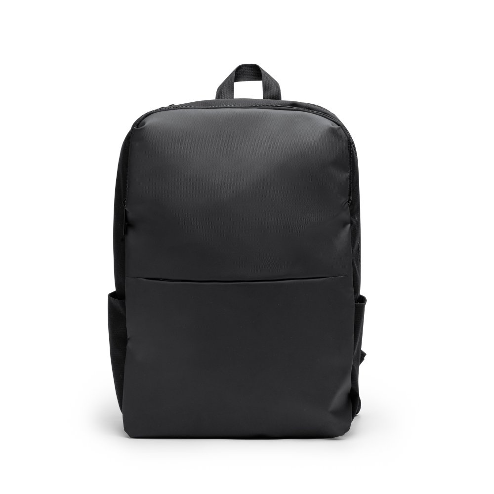 - Рюкзак из искусственной кожи и полиэстера 600D RPET. Основное отделение с внутренним карманом для ноутбука 15'' с мягкой подкладкой. Передний карман. Мягкая спинка и плечевые ремни.