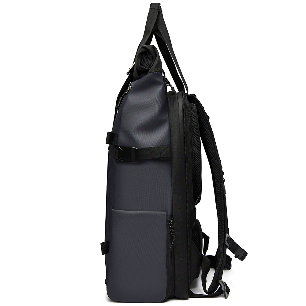 - Ультранавороченный рюкзак для города и путешествий PARKER. Его особенности - передняя и боковые части этого большеформатного рюкзака сделаны из особо прочного полиэстера плотностью 900 D покрытого влаго- и грязезащитной полиуретановой пропиткой, устойчивой к широкому диапазону температур. Одно большое ролл-топ отделение имеет два входа: ОДИН сверху - укреплённый пластиком край рюкзака фиксируется липучками-велькро и регулируемым по длине ремнём с металлической застёжкой с возможностью увеличения и фиксации объёма на пяти уровнях, Второй, АНТИКРАЖНЫЙ сзади - на водонепроницаемой молнии со скрытым звеном и возможностью открыва на 180 градусов. Внутри уплотнённые карманы для ноутбука до 15,6 дюймов и планшета до 10 дюймов с клапаном на велькро, карман-органайзер для аксессуаров и ЭКСКЛЮЗИВНАЯ ОПЦИЯ - специальный карман-сетка ДЛЯ АРОМАСАШЕ. На передней стенке большой вертикальный карман на водонепроницаемой молнии со скрытым звеном. Два боковых кармана значительно расширяют функционал: один на водонепроницаемой молнии со скрытым звеном с карманом-сеткой для мелких гаджетов внутри. Второй, открытый с возможностью увеличения объёма с помощью молнии позволит разместить бутылку, зонт и всё что необходимо для быстрого доступа ПОТАЙНОЙ КАРМАН на скрытой молнии на дне надёжно защитит, а подвесной карман вверху задней стенки обеспечит быстрый доступ к самым необходимым вещам. Задняя стенка усилена пластиковой прокладкой, а специальная накладка для чемодана и скрытый под ней карман на молнии делают этот рюкзак незаменимым спутником для путешествий. Двойное уплотнение анатомических накладок на задней стенке распределяет его вес и снижают нагрузку на позвоночник. Гигроскопичная вентилируемая трехслойная 3D-сетка на накладках задней стенки и подкладке плечевых ремней предотвращает скольжение и обеспечивает отличную вентиляцию и комфорт при контакте с кожей и одеждой. Две короткие ручки надёжно закреплены несколькими прострочками и соединяются друг с другом с помощью лентф-велькро, что дополнительно фиксирует объём рюкзака в верхней части. Уплотнённые плечевые ремни регулируются по длине и имеют регулируемый по длене фикастор на застёжке-фастексе на уровне груди и дополнительные петли для фиксации различных аксессуаров и гаджетов. Множество дополниельных петель внутри и снаружи, а также боковые ремни-стяжки на фастексах для регулирования и фиксации бокового объёма завершают весь наворосенный функционал этой модели. Размер: 50(72)*32*18 см Материал: Полиэстер с водонепроницаемой пропиткой (внутренней и внешней) Плотность: 900D Рекомендуемая максимальная нагрузка: не более 10 кг. Вместимость: 26 л. Вес: кг