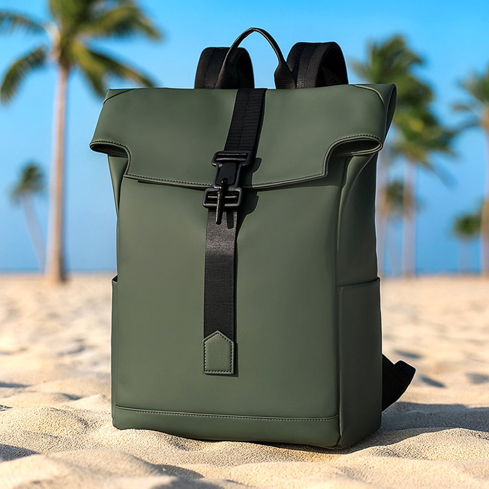 - Стильный ролл-топ рюкзак SAFARI. Его особенности - сочетание с высококачественной искусственной кожи с бархатистым на ощупь микрофибровым покрытием с инновационными элементами. Одно большое отделение закрывается супер-технологичной магнитной пряжкой на регулируемый по длине ремень. Внутри уплотнённый карман для ноутбука до 15,6 дюймов и карман на молнии для мелочей и ЭКСКЛЮЗИВНАЯ ОПЦИЯ - специальный карман-сетка ДЛЯ АРОМАСАШЕ. На передней стенке один большой скрытый карман на молнии. Два открытых кармана по бокам рюкзака позволяют разместить всё необходимое и существенно расширяют функционал и вместимость рюкзака. Инновационная технология структуры широких регулируемых по длине плечевых ремней обеспечивает максимальный комфорт и предотвращает скольжение. Уплотнённая задняя стенкя распределяет вес и снижает нагрузку на позвоночник, а специальная накладка для чемодана и карман на молнии делают этот рюкзак незаменимым спутником для путешествий. Короткая ручка укреплена накладкой из искусственной кожи для максимального комфорта рук. Размер: 45*32*16 см Материал: Искуственная кожа Рекомендуемая максимальная нагрузка: не более 10 кг. Вместимость: 18 л. Вес: кг