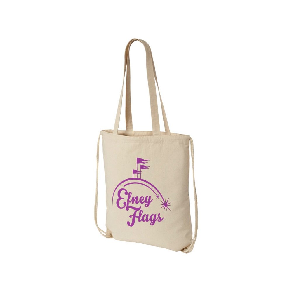 - Многофункциональный хлопчатобумажный мешок с длинными ручками и затягивающим шнурком, который можно носить в качестве сумки для покупок или рюкзака. Большой основной отсек, закрывающийся затяжкой шнурка. Имеет две выпадающие ручки длиной 31 см. Вместимость: 16 л, выдерживает до 5 кг веса. Хлопок, 240 g/m2.