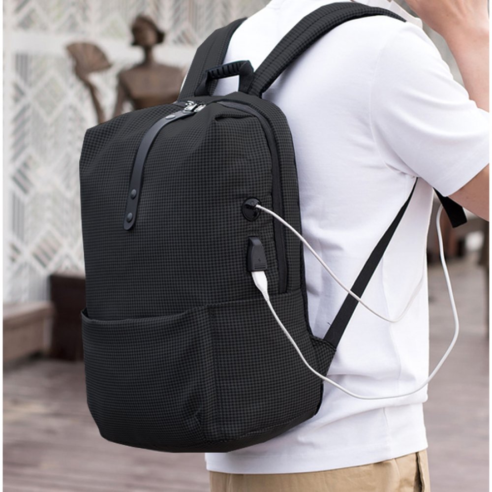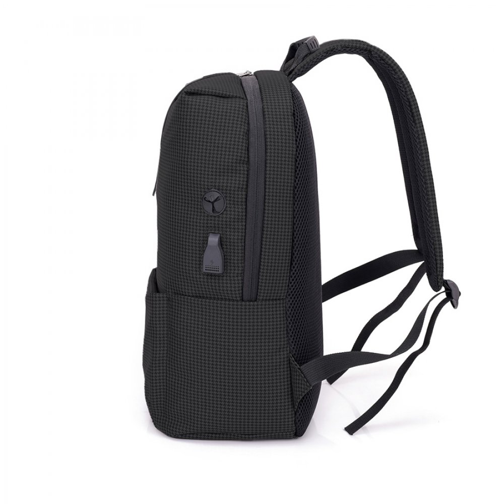 - Стильная новинка с эргономичным дизайном. Эффектно выглядит узорчатый материал рюкзака. Скрытое переднее отделение на замке для мелочей, в боковые карманы легко поместится бутылка для воды или термокружка. Снаружи есть USB-разъем с проводом внутри для подключения внешнего аккумулятора, а также отверстие для наушников. Широкие вентилируемые лямки и спинка, пластиковая ручка. Вместительный основной отдел имет карман для ноутбука.