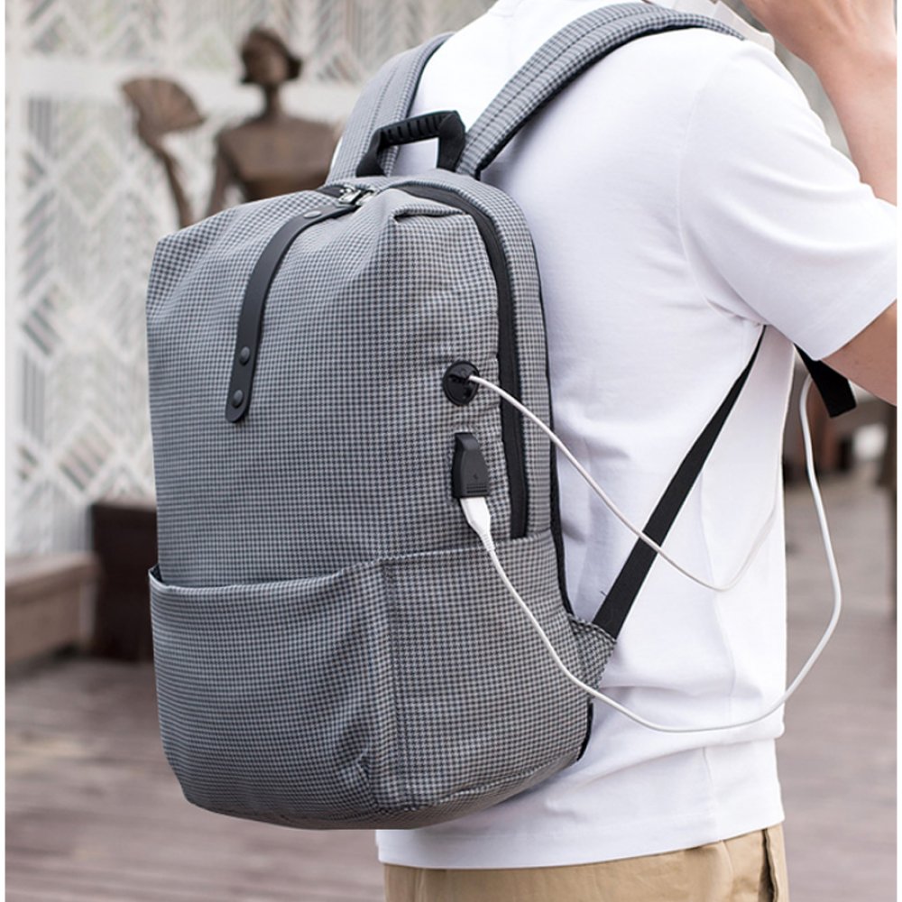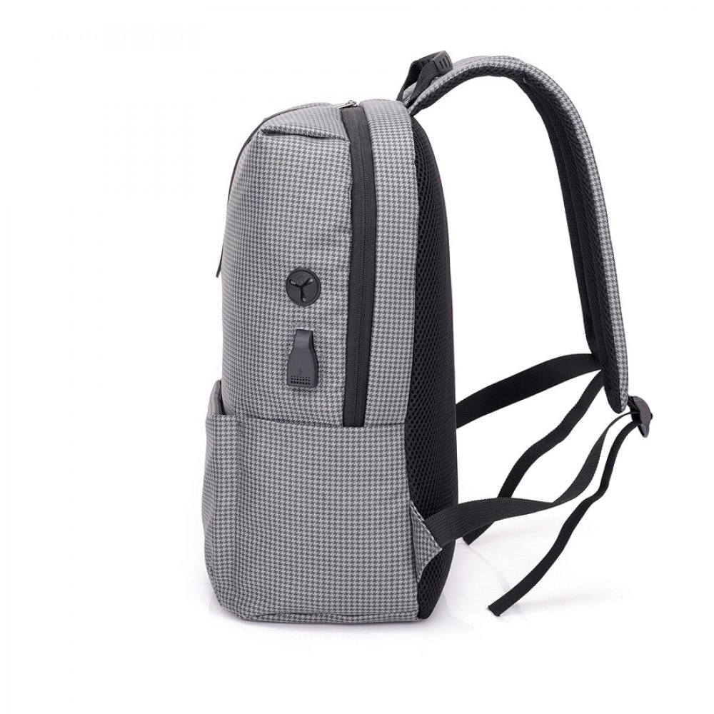 - Стильная новинка с эргономичным дизайном. Эффектно выглядит узорчатый материал рюкзака. Скрытое переднее отделение на замке для мелочей, в боковые карманы легко поместится бутылка для воды или термокружка. Снаружи есть USB-разъем с проводом внутри для подключения внешнего аккумулятора, а также отверстие для наушников. Широкие вентилируемые лямки и спинка, пластиковая ручка. Вместительный основной отдел имет карман для ноутбука.