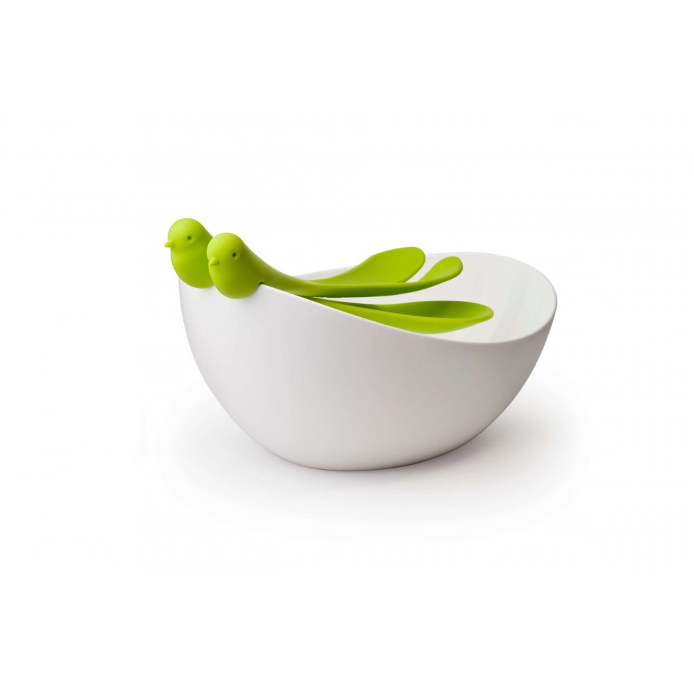"Необычная и стильная салатница с сервировочными ложками Sparrow приближает Вас к природе. В ней так и хочется приготовить аппетитный, полезный и свежий салат! Каждая пара птичек в природе поддерживает друг друга в постройке своего гнездышка! Так и птички, которые входят в набор Sparrow, выполняют роль вилки и ложки, тем самым помогая Вам в приготовлении любимого салата! Основные характеристики Sparrow: отличный подарок на кухню, оригинальный товар бренда Qualy.