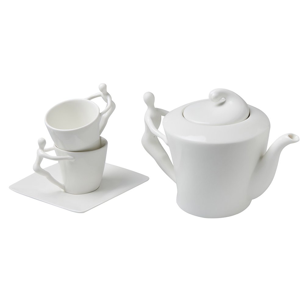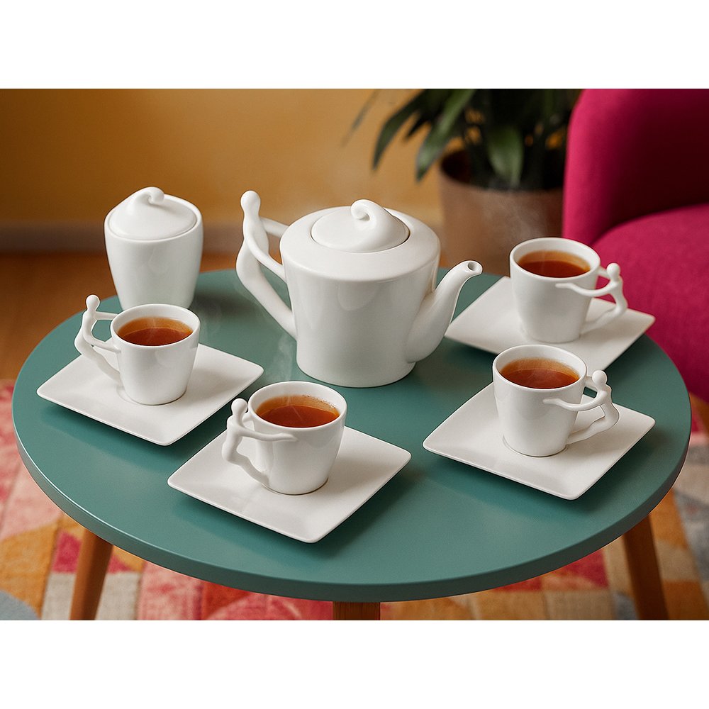 - Это не просто посуда, а настоящее произведение искусства для вашего стола. Белоснежный сервиз создан для тех, кто ценит не только вкус, но и эстетику каждого момента. Уникальный дизайн: Ручки чашек и чайника выполнены в виде стилизованной фигуры человека. Это придает сервизу особый характер и глубину, превращая процесс чаепития в диалог с искусством. Полный комплект: В набор входит все необходимое: 4 чашки, 4 блюдца, чайник и сахарница. Эксклюзивная упаковка: Сервиз поставляется в деревянной коробке. Вы можете нанести на нее логотип или памятную надпись. Это готовая идея для безупречного корпоративного подарка. Универсальность и стиль: Белоснежный цвет и лаконичный дизайн делают сервиз уместным в любом интерьере — от классики до модерна.