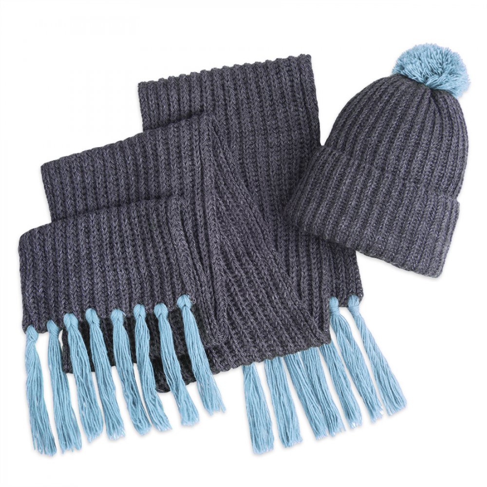 Мягкий, пушистый и уютный комплект из шарфа и шапки поможет согреться вам в холодное время года. Стильный меланжевый темно-серый цвет в средневековой Франции означал огромную власть. nbsp;В те времена вся знать в основном nbsp;одевалась в графитовые тона. Недаром, родилось выражение «серый кардинал». Почувствуйте магическое влияние серого цвета в сочетании с яркой отделкой! Цвет помпона и кисточек близкий к Pantone 637CСрок сборки комплектующими (помпоном и кисточками) nbsp;- nbsp;по запросу.