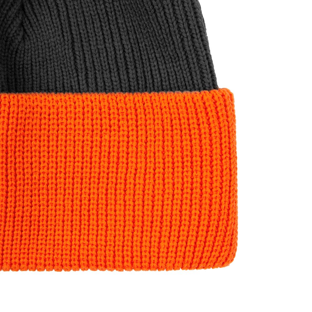 - Двуслойная шапка фактурной вязки с контрастным подворотом и помпоном.