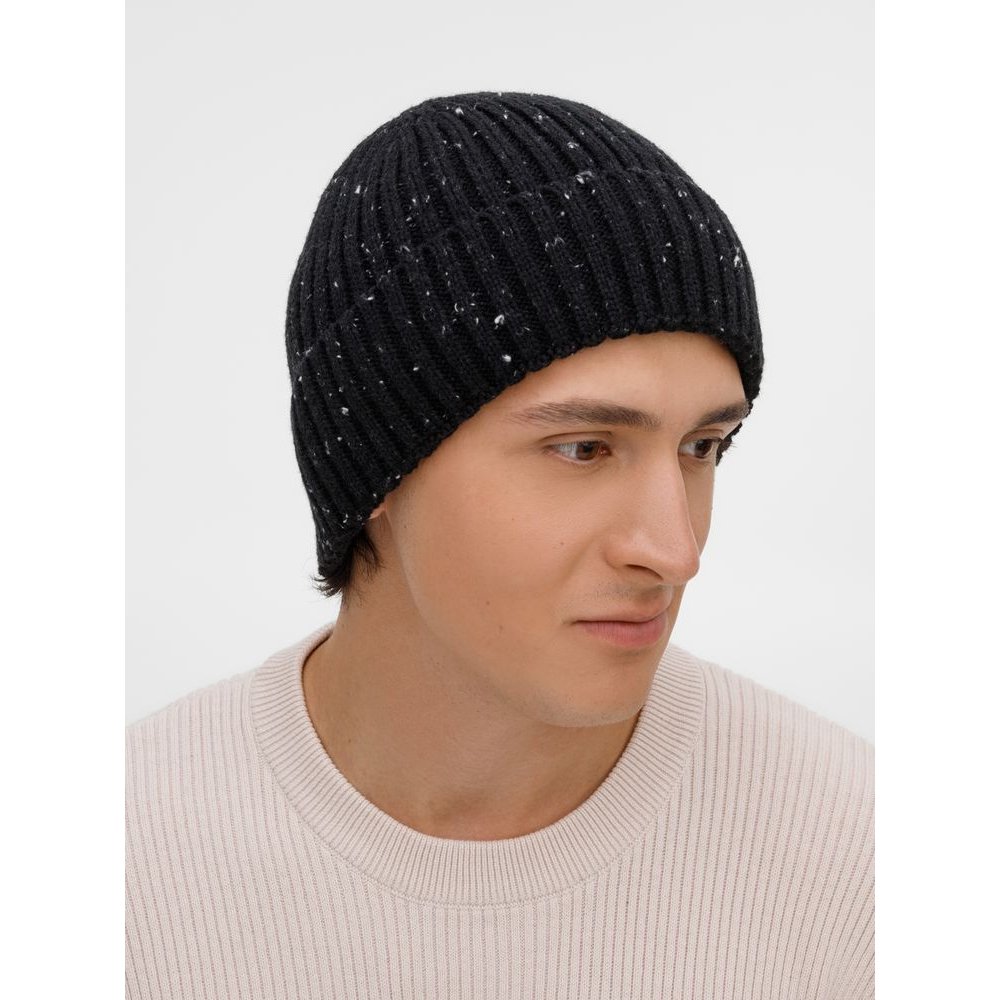 - Шапка-бини с отворотом выполнена крупной резинкой из мягкой акриловой пряжи, которая создает дополнительный объем и хорошо сохраняет тепло. Благодаря оригинальному дизайну она позволит создать запоминающийся образ со стильным и лаконичным акцентом.