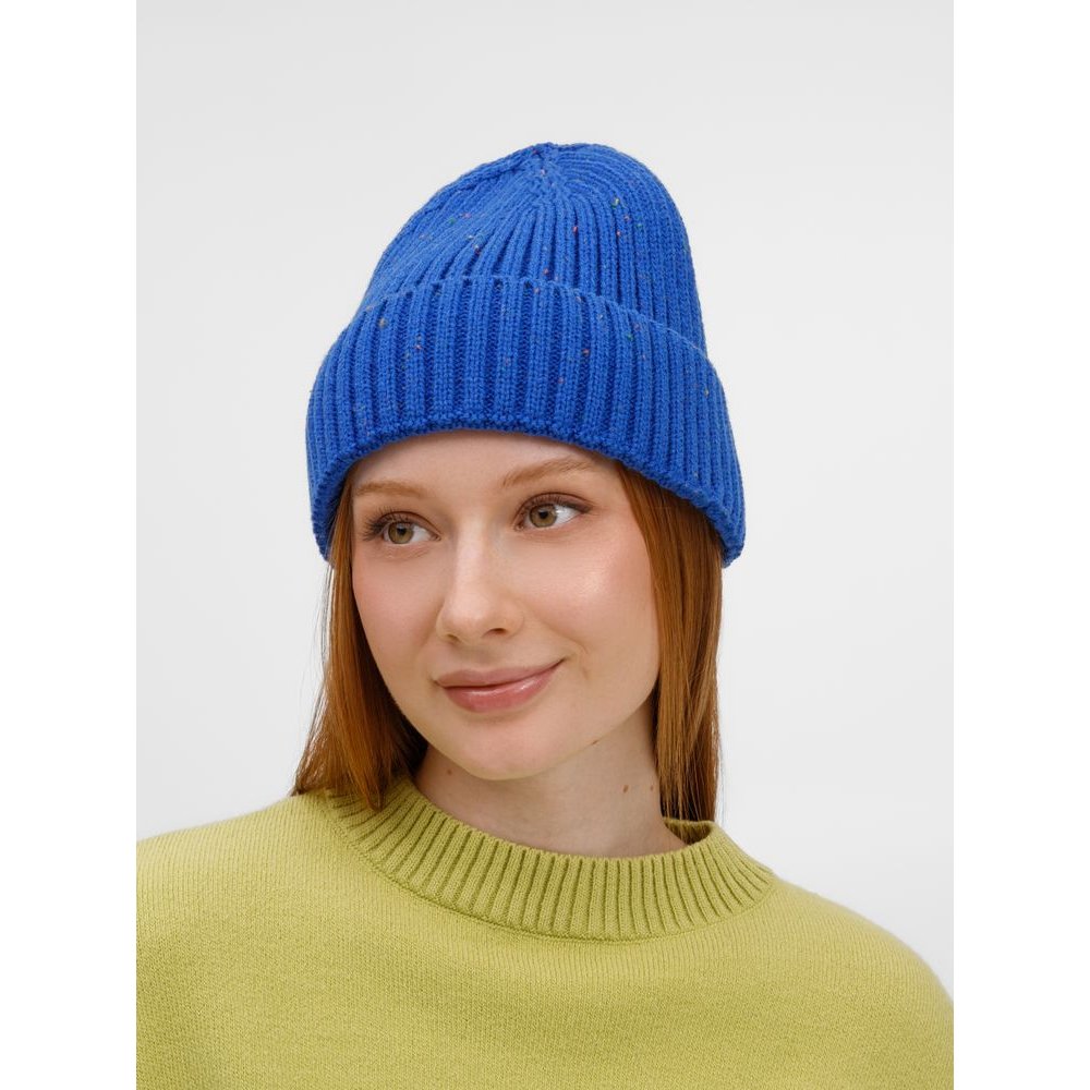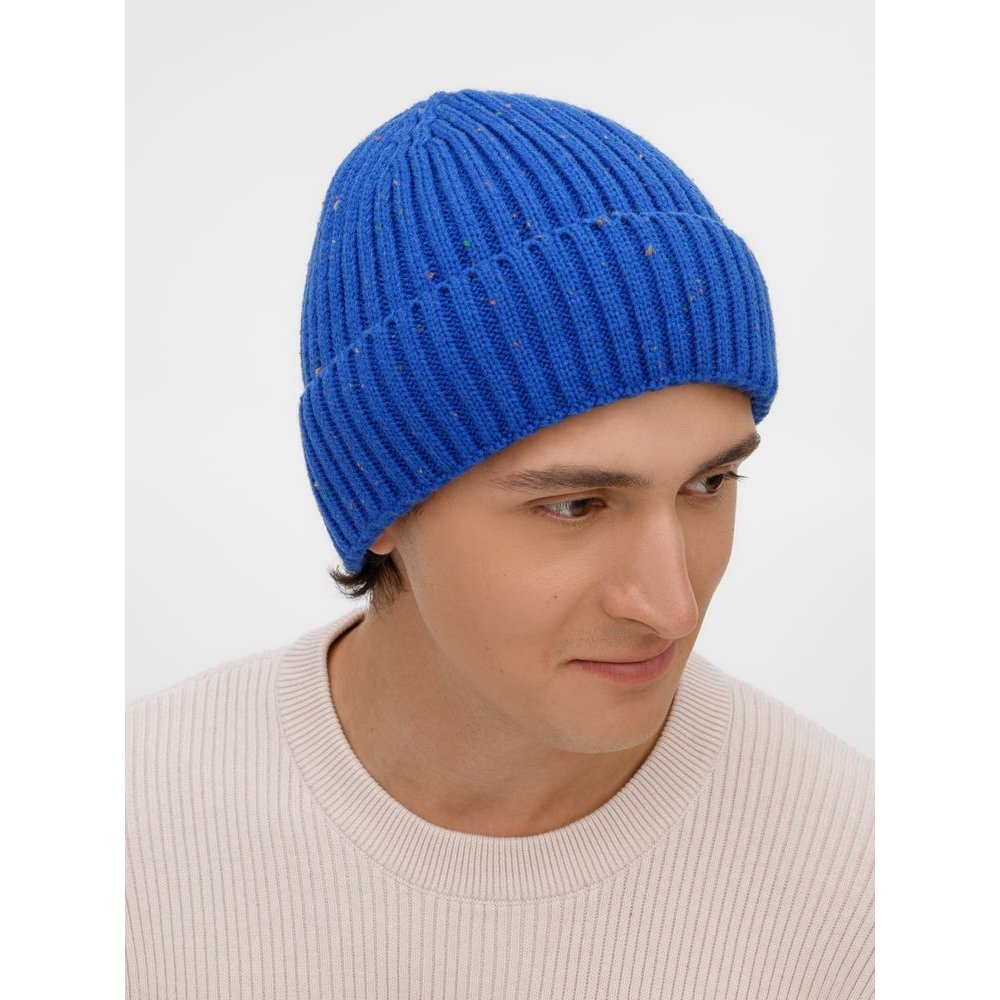 - Шапка-бини с отворотом выполнена крупной резинкой из мягкой акриловой пряжи, которая создает дополнительный объем и хорошо сохраняет тепло. Благодаря оригинальному дизайну она позволит создать запоминающийся образ со стильным и лаконичным акцентом.