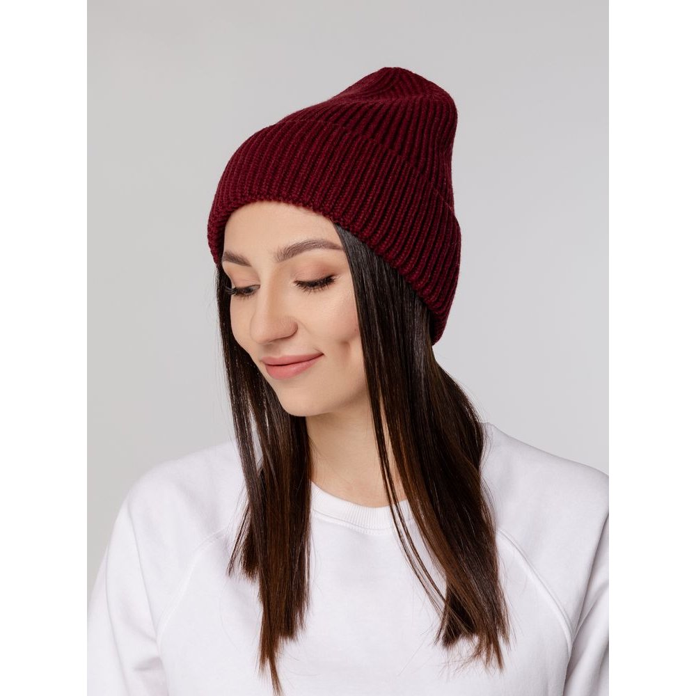 - Шапка-бини из полушерстяной пряжи актуальных приглушенных оттенков. Трендовый фасон с удлиненным верхом — для расслабленного повседневного образа.