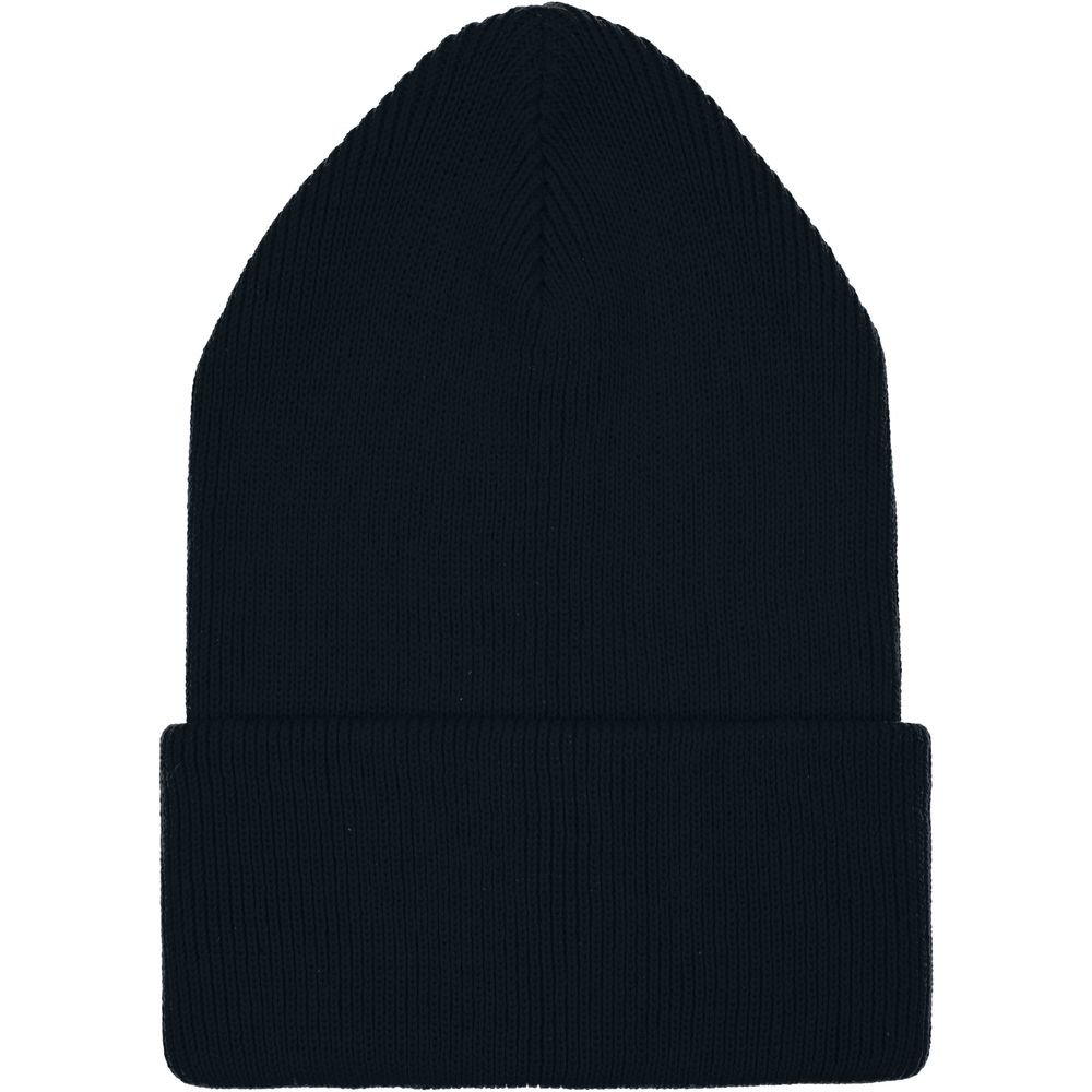 Двухслойная шапка, связанная резинкой, с широким отворотом.