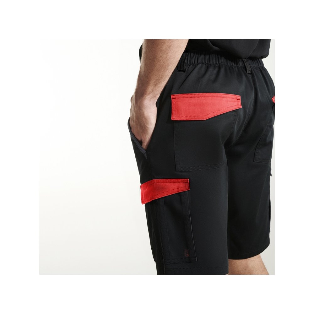 - Шорты в двухцветной комбинации - Удобная и регулируемая ткань. - Контрастные петли для ремня, клапаны, складка и кант по краю кармана - Эластичный пояс сзади. - Два передних кармана. - Два задних кармана с клапаном и застежкой-липучкой. - Два боковых кармана со складкой и клапаном застегиваются на липучку.