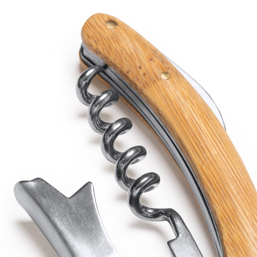 - Классический штопор из нержавеющей стали с бамбуковой ручкой — это стильный и функциональный инструмент, позволяющий легко открывать бутылки с вином.