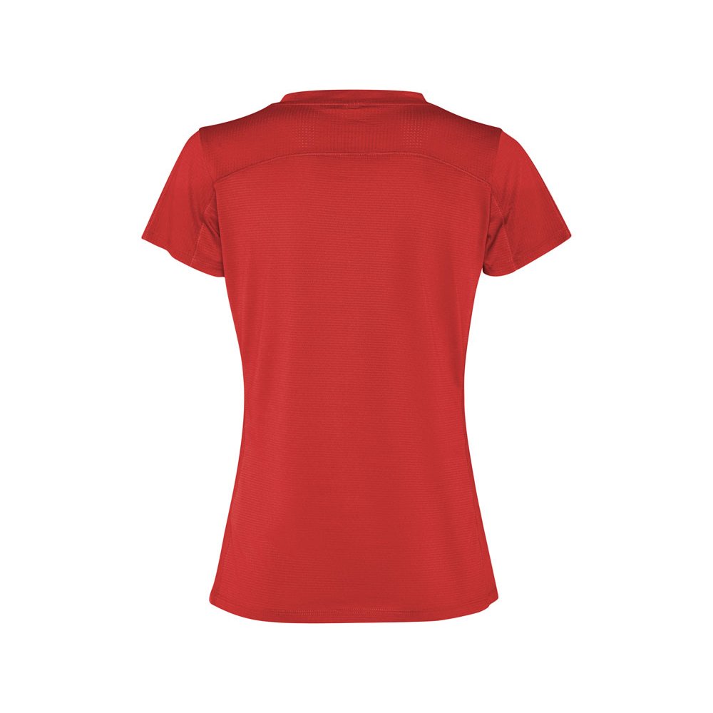 - Женская технологическая футболка с короткими рукавами. Легкая ткань из переработанного полиэстера. · Воротник с перекрещенными деталями. · Кокетка сзади и рукава из дышащей ткани. · Направленные вперед и наклонные швы по бокам и плечам. · Закругленный низ. · Комбинация дышащих и эластичных тканей.