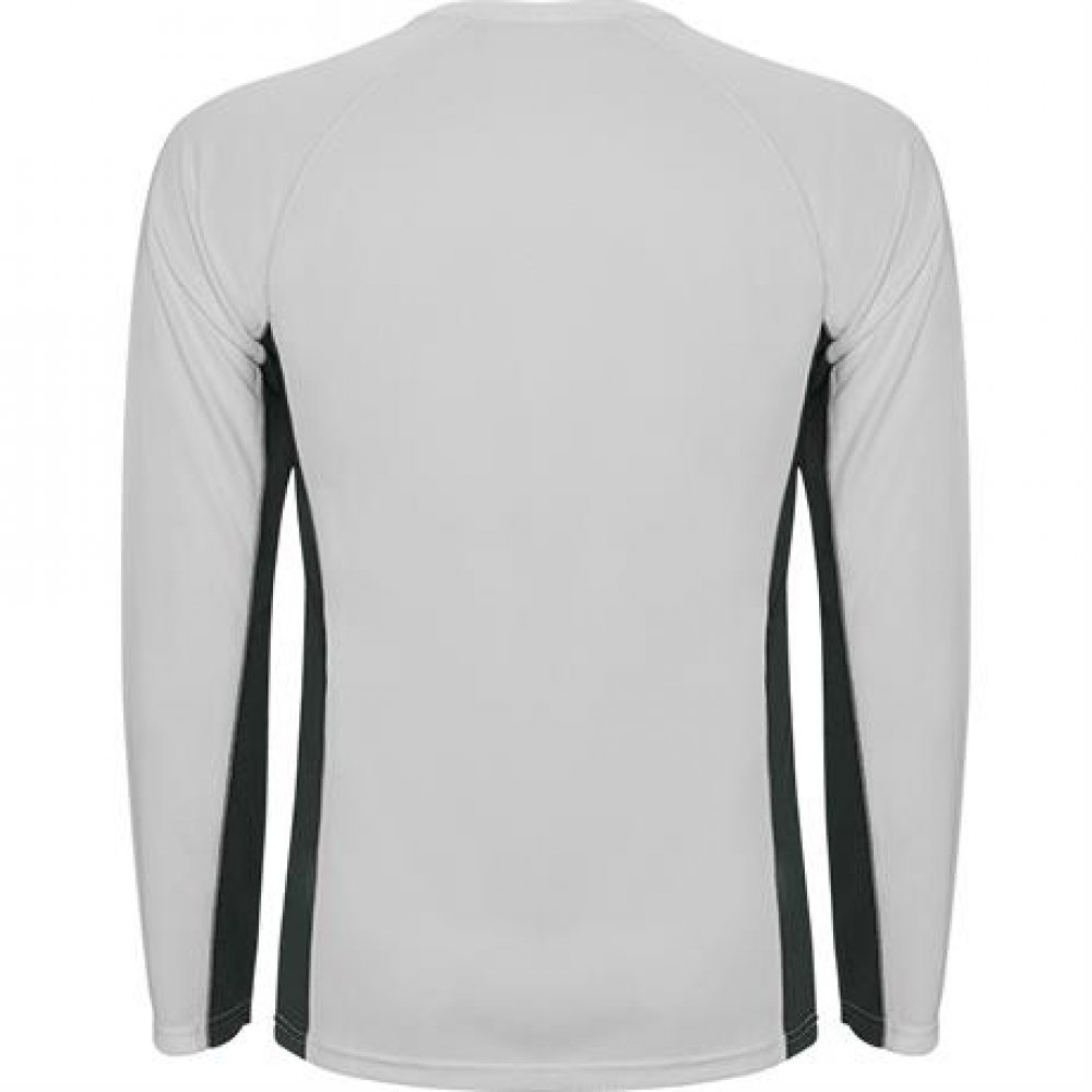 - Спортивная футболка из двух комбинированных тканей из полиэстера. Длинные рукава реглан. Основная ткань — bird's eye, а боковые вставки и рукава с внутренней стороны — с микроперфорированной ткани. Круглая горловина с усиленными закрытыми внутренними швам