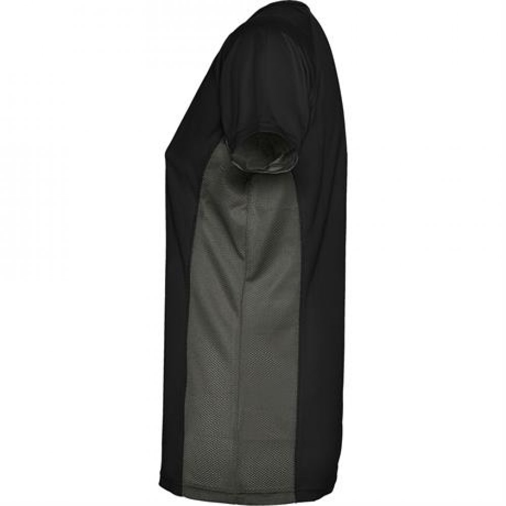 - Спортивная футболка с короткими рукавами реглан, изготовленная из двух комбинированных тканей из полиэстера. Основная ткань — ткань bird's eye, а боковые вставки и рукав с внутренней стороны — с микроперфорированной ткани. Круглая горловина с усиленными