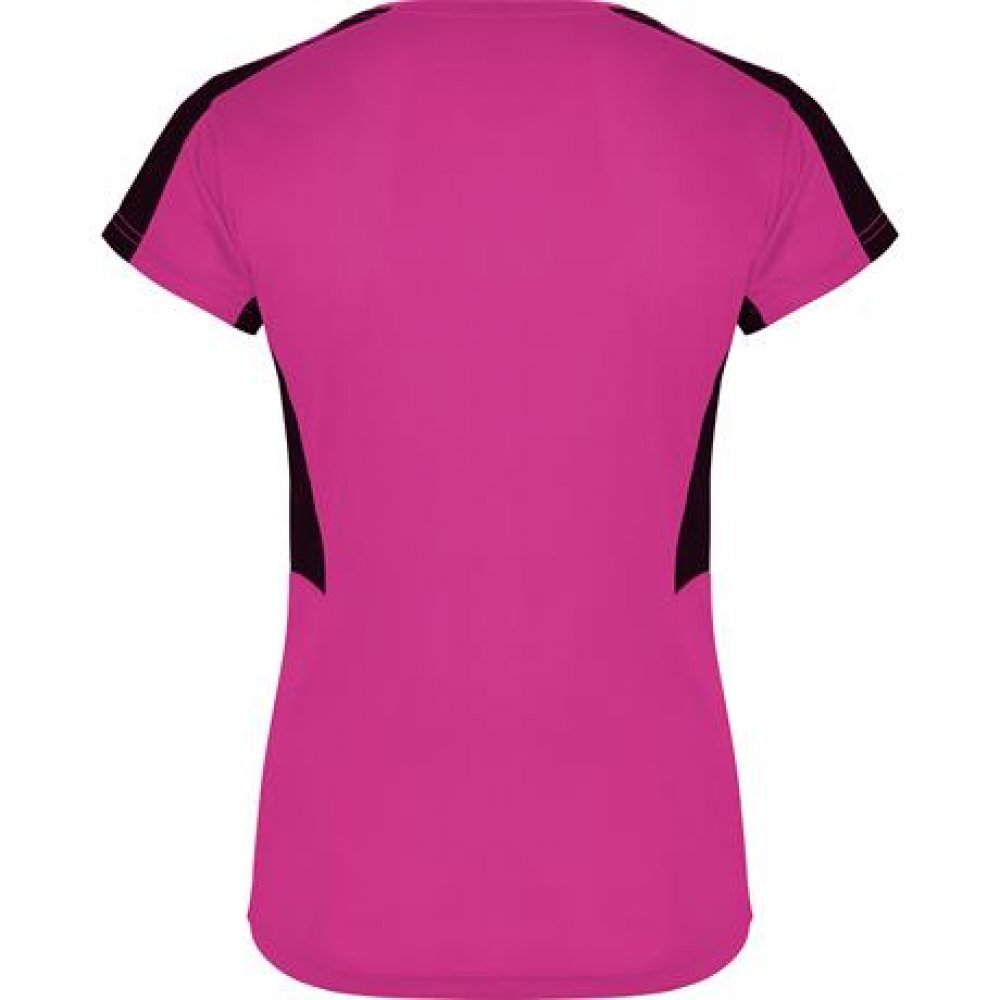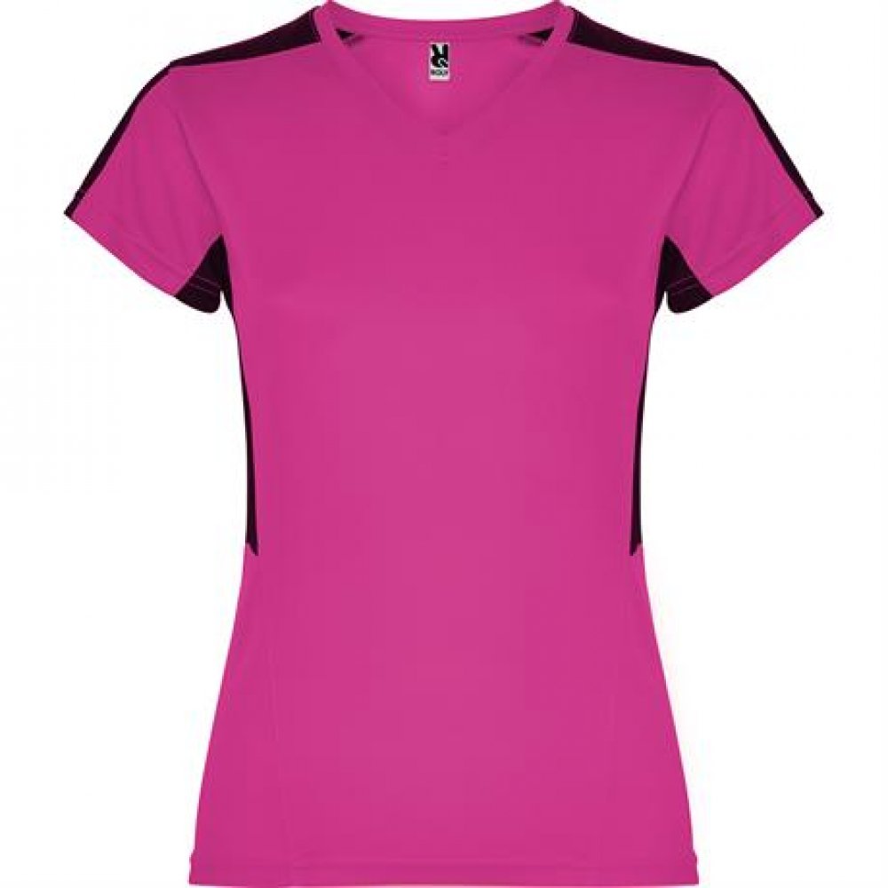 - Женская Спортивная футболка с короткими рукавами. 1. Горловина с V-образным вырезом. 2. Сочетание двух тканей с полиэстера на плечах и боках. 3. Основная ткань — ткань bird's eye, и 3D-сетчатая дышащая ткань — на плечах и боковых вставках. 4. Ткань, под