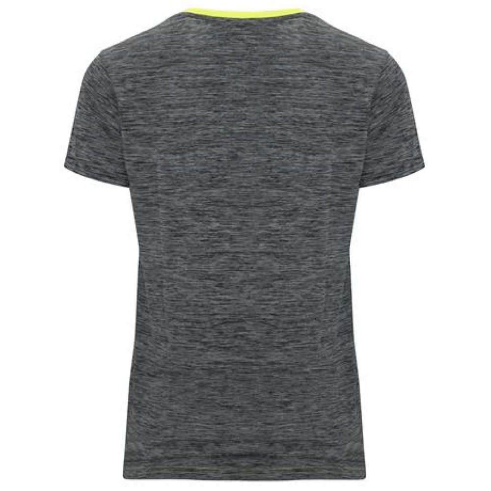 - Женская Спортивная футболка с короткими рукавами. 1. Круглая горловина. 2. Сочетание двух тканей с полиэстера на спине, плечах и рукавах. 3. Основная ткань спереди — ткань bird's eye, и ткань space dye — сзади. 4. Спинка немного длиннее переда. Быстросохнущая дышащая ткань. *Съемная этикетка. *Техническая ткань. *Дышащая ткань. *Концепция Duo."