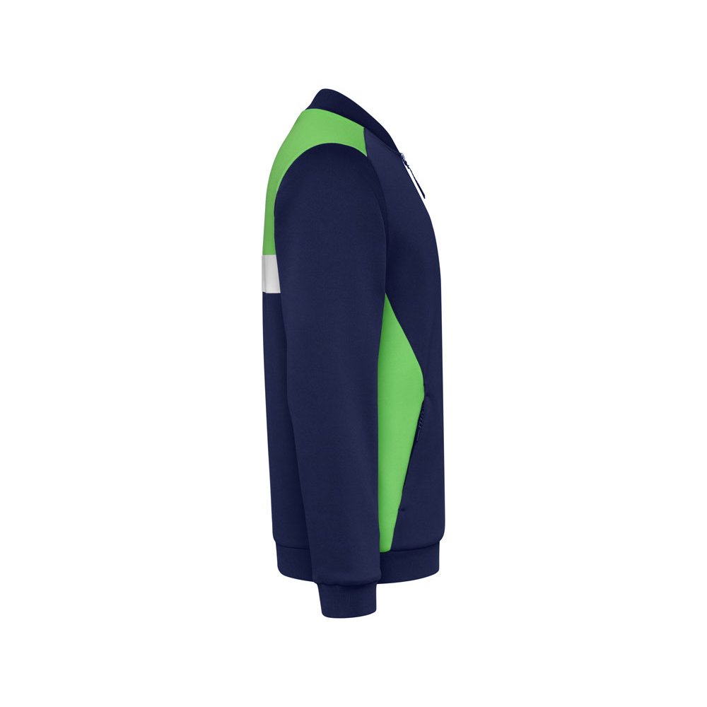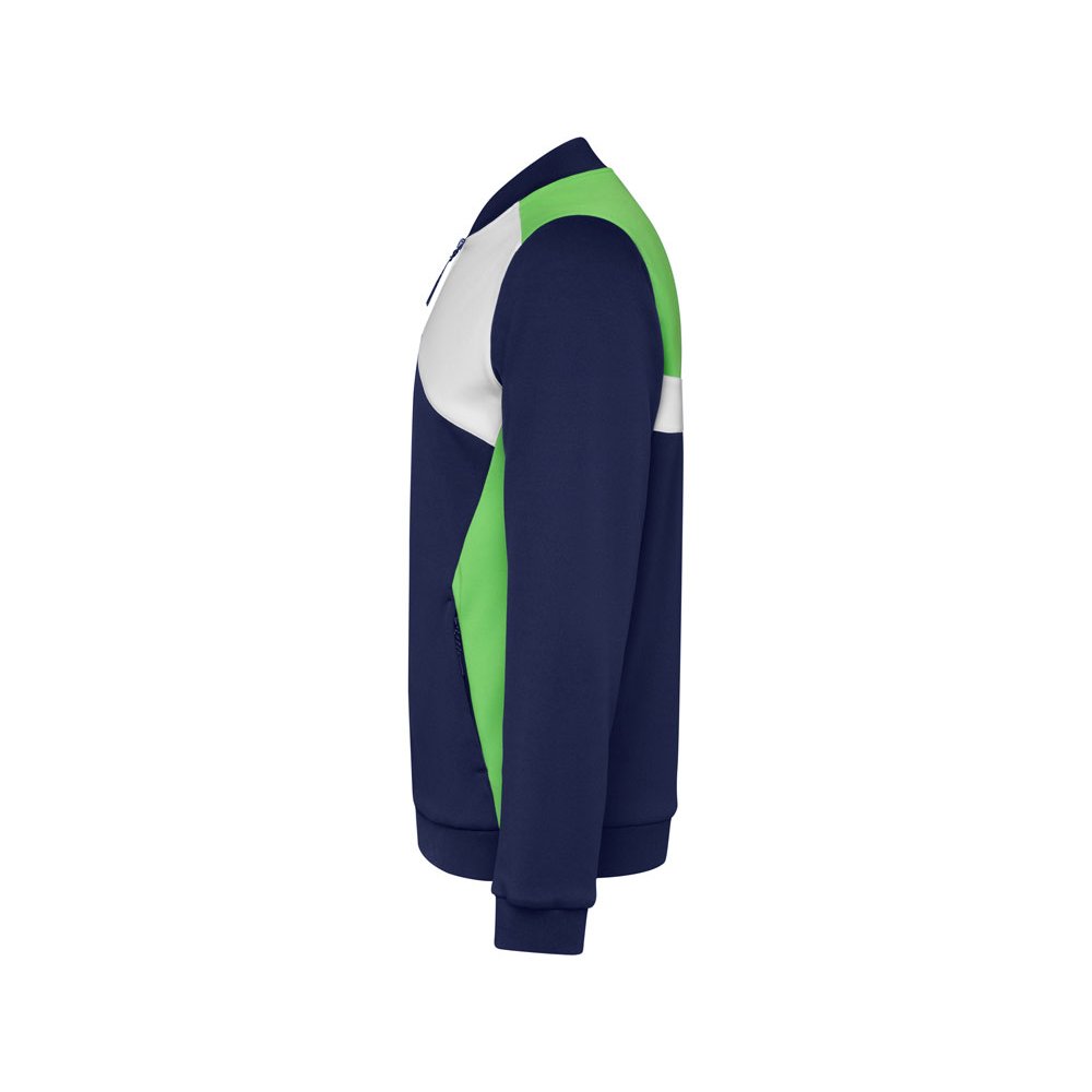 - Спортивная куртка на молнии. Боковые карманы закрываются на молнию. Воротник, манжеты и низ из риба 1х1. Ассиметричная левая сторона спроектирована специально для вышивки. Может быть с комбинирована с брюками Rhodes.