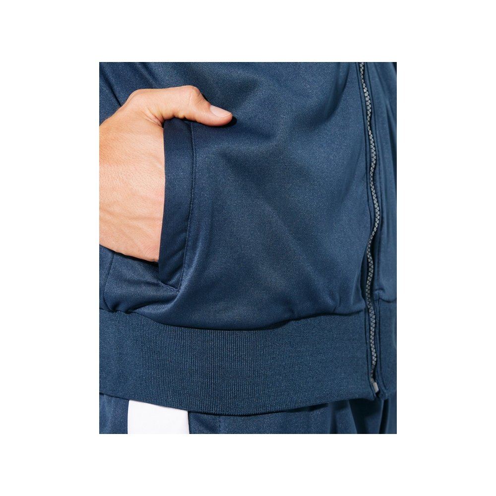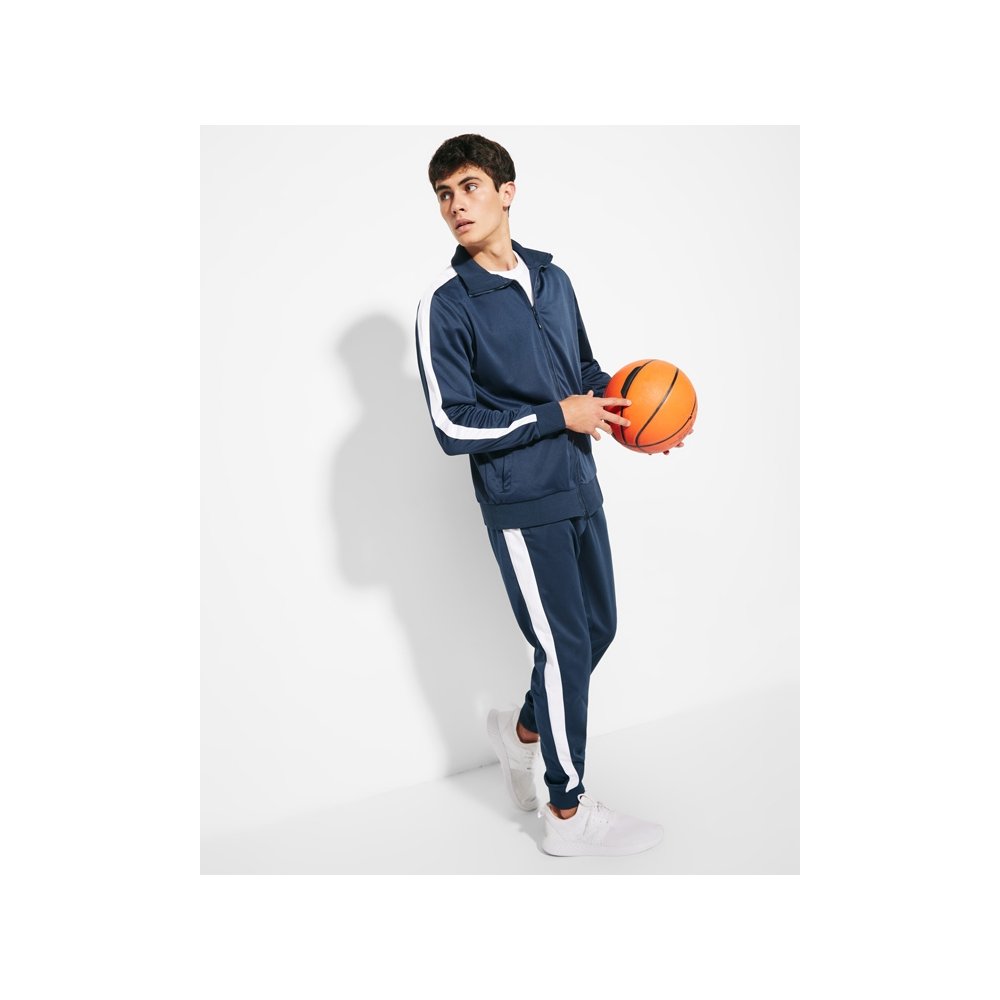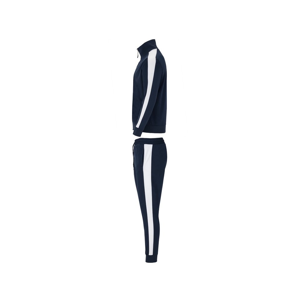 - Cпортивный костюм с олимпийкой и брюками. - Высокий воротник. - Горловина, манжеты и низ из риба 1 x 1. - Молния по центру в тон с бегунком. - Боковые карманы кофты на молнии. - Контрастные лампасы по бокам. - Брюки с эластичным поясом со шнурком для регулировки по талии, двумя боковыми карманами. - Карман сзади на молнии. - Низ с эластичными манжетами из риба 1 x 1.