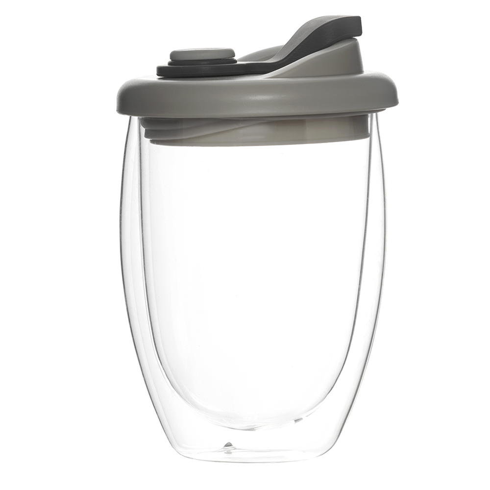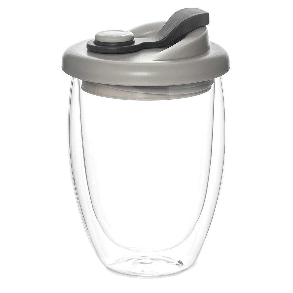 Стакан стеклянный "Lotos" с двойными стенками и крышкой, серый арт. 56000.20