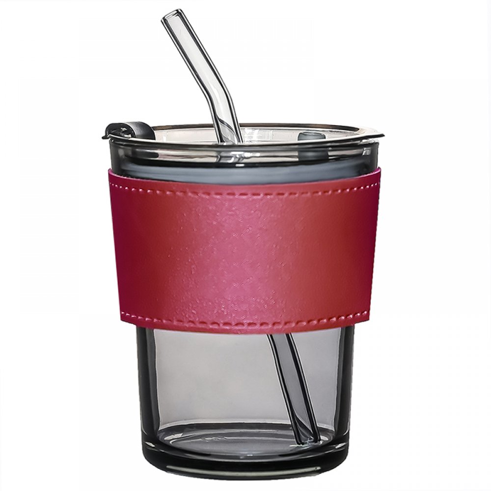 Стакан стеклянный с трубочкой и капхолдером Karamel, бордовый арт. 56003.40