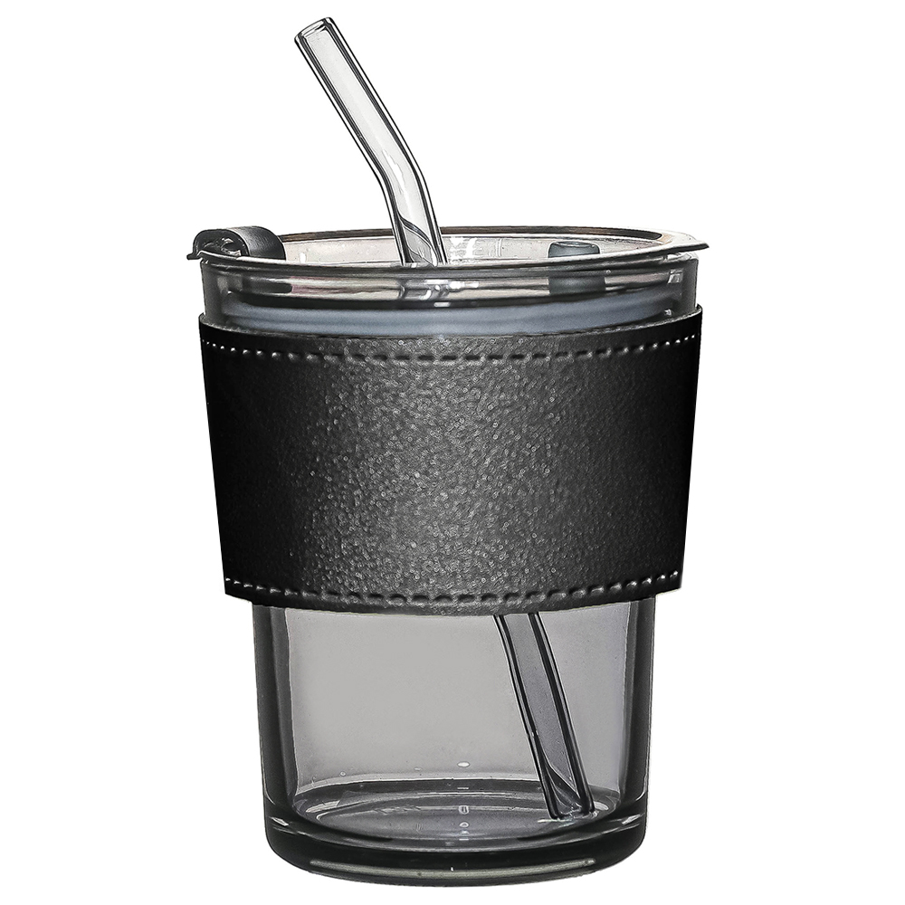 Стакан стеклянный с трубочкой и капхолдером "Karamel", черный арт. 56003.02