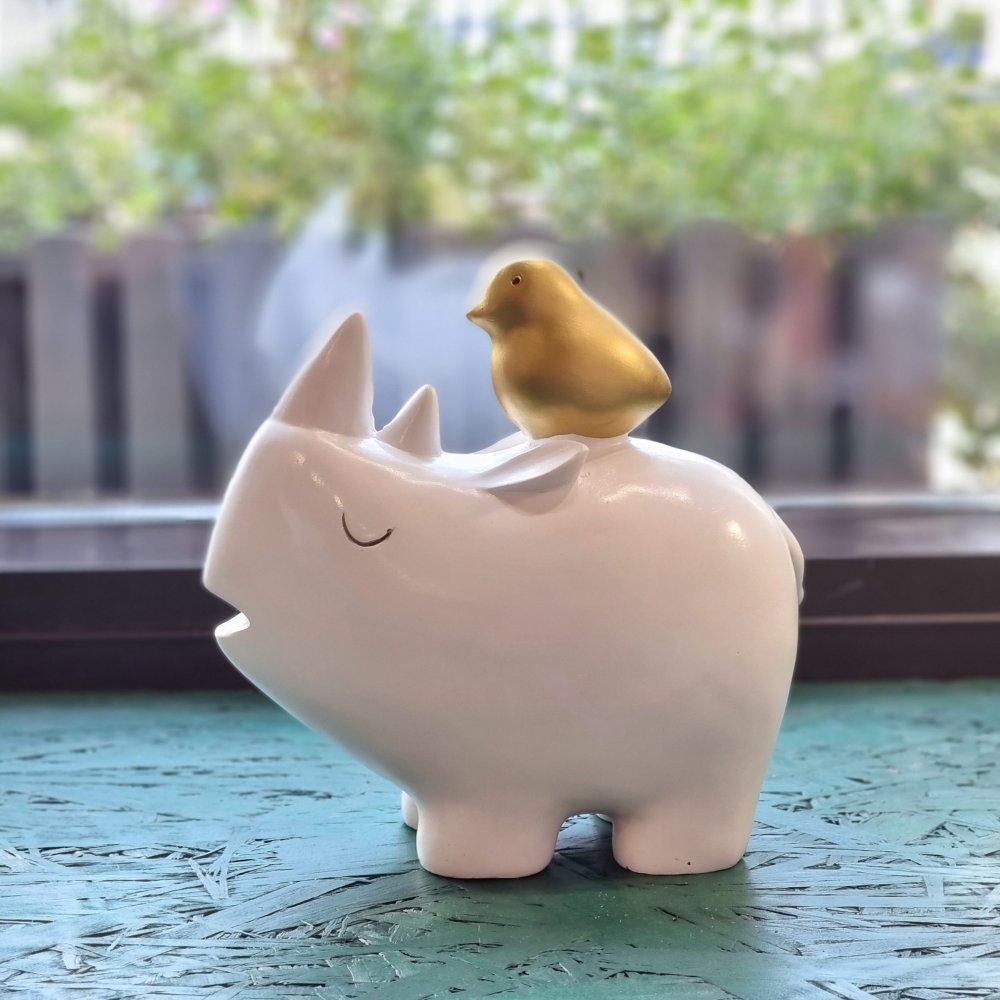 - Статуэтка "Носорог и пеночка" — это яркая и выразительная фигурка, изображающая носорога и маленькую пеночку (птицу), символизирующих силу и нежность.Такой набор отлично подойдет для украшения интерьера.