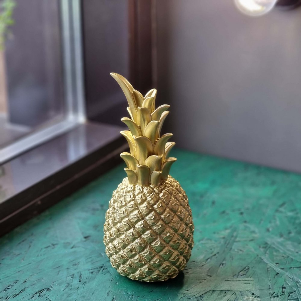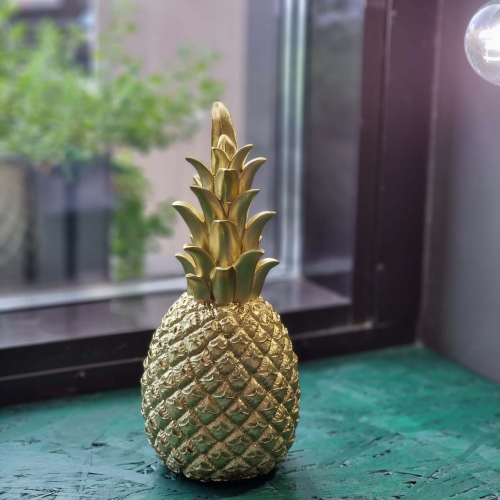 - Золотой ананас - стильная вещица для украшения современного интерьера. Статуэтка сделана из современного полимерного материала, из которого производят прочные и долговечные изделия домашнего обихода. Стильная и оригинальная композиция "Золотой Ананас" станет прекрасным декоративным украшением для вашего интерьера! Этот простой предмет способен преобразить интерьер, создать уют и погрузить в особую атмосферу. Композиция прекрасно подойдет для декора любого интерьера, особенно в стиле модерн. Ее можно поставить в любом месте, где она будет удачно смотреться и радовать глаз. Кроме того, это отличный вариант подарка для ваших близких и друзей.