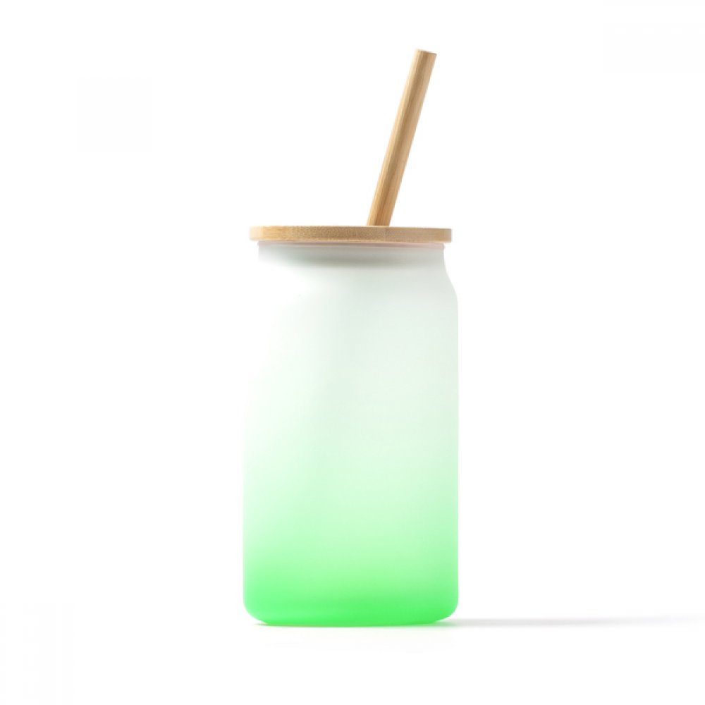Цветное боросиликатное стекло с эффектом льда. Бамбуковая крышка и соломинка. Объем 350 мл. Идеальная чашка с градиентным цветовым дизайном, идеально подходящая для вашего бизнеса.