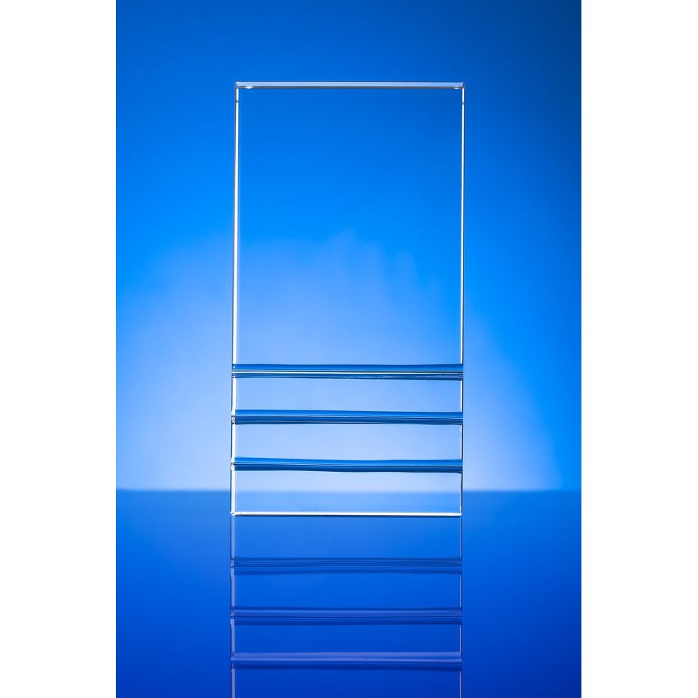 - Стела изготовлена из стекла К9, в основе которого лежит оптическое боросиликатное стекло. Эту марку стекла отличает низкий процент посторонних включений, высокий показатель преломления и высокая прозрачность — идеальные качества для изготовления наград премиального уровня.