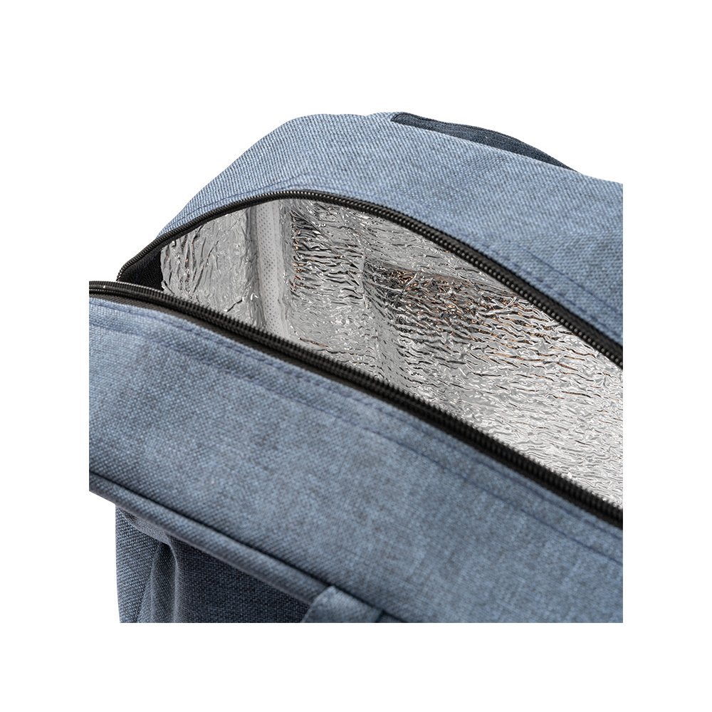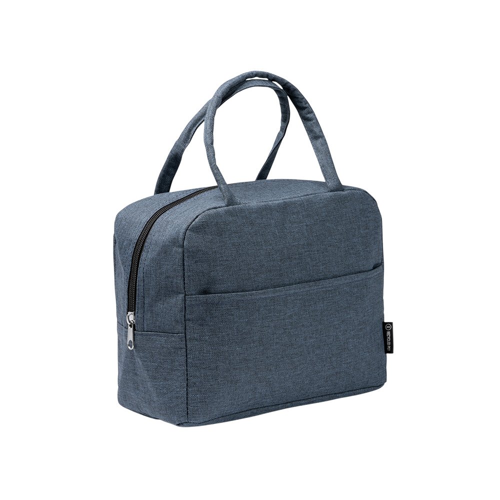 Термосумка из переработанного ПЭТ плотностью 600D с изотермической внутренней поверхностью. Передний карман и мягкие круглые ручки.