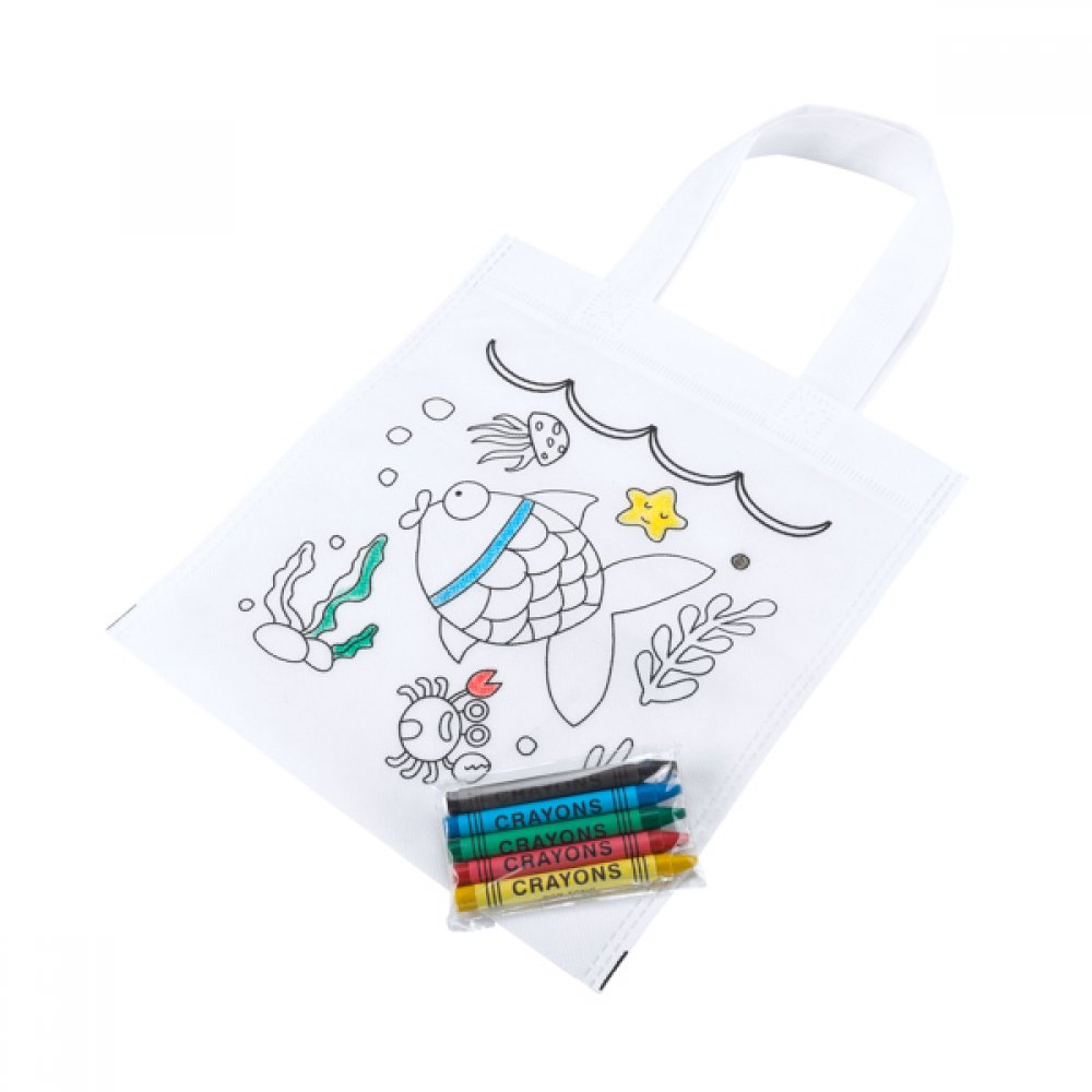 - Нетканый мешок с дизайном для раскрашивания. 5 карандашей в разных цветах в комплекте.