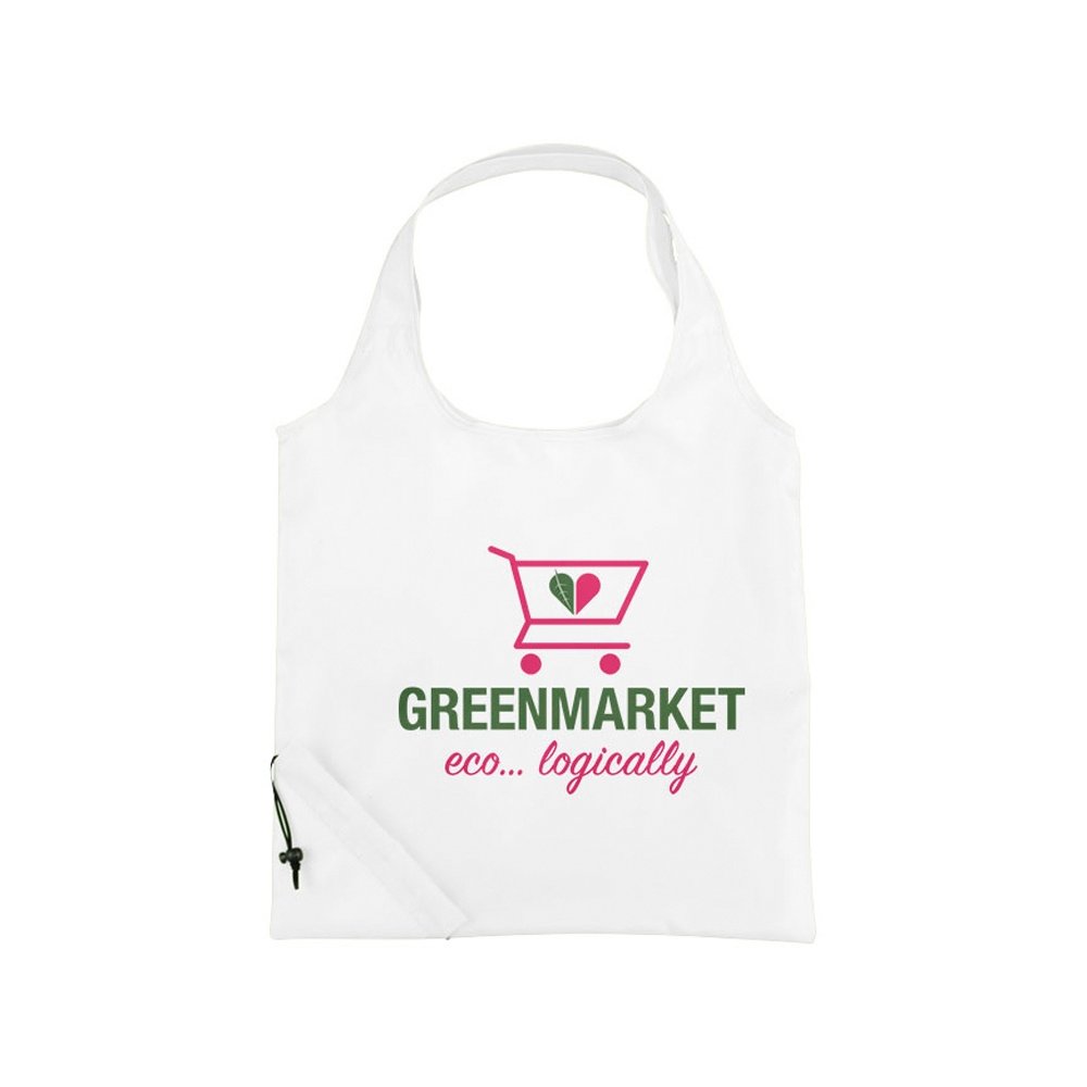 Складная сумка для покупок Bungalow. Открытое основное отделение с двойными ручками высотой 20 см. Уникальная складная сумка с кулиской. Полиэстер 210D.