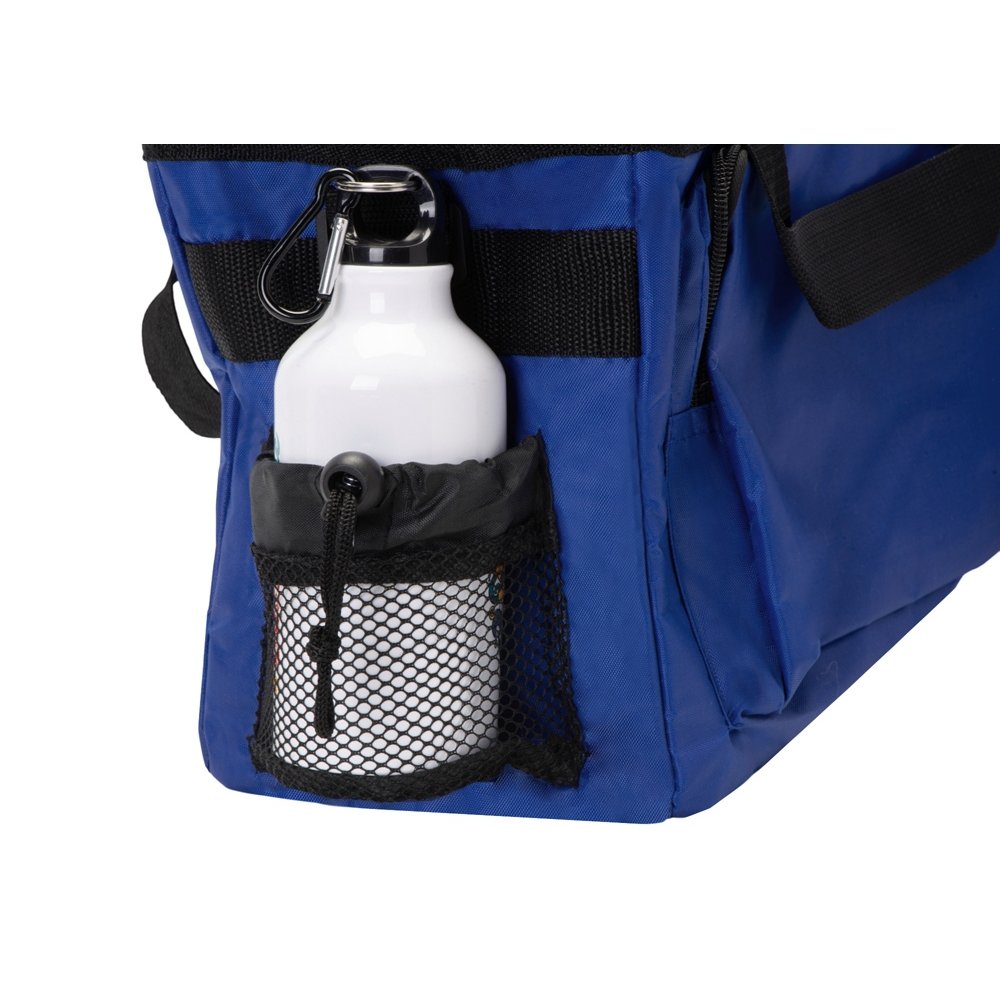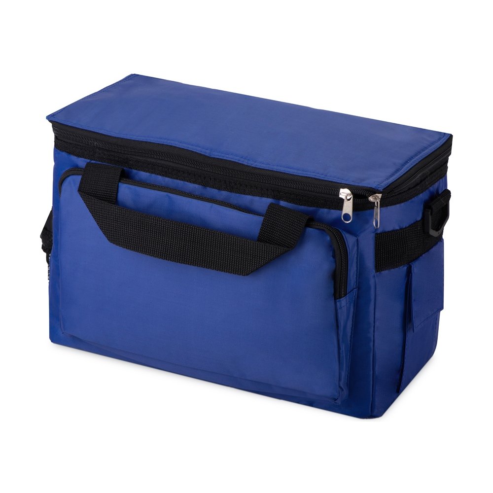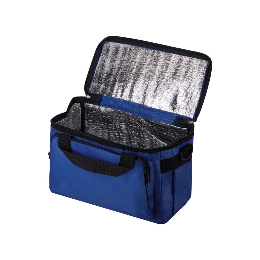 - Вместительная сумка-холодильник (объем – 13 л.) «Камайоре» прекрасно подойдет не только для индивидуальных пикников, но даже и для доставки горячих продуктов (пиццы, например). С боков 2 кармана – один сетчатый с регулируемой затяжкой для бутылки. Другой для приборов, салфеток или других мелочей закрывается на липучку. Наружный слой сделан из полиэстера, на него может быть нанесена персонализация: имя владельца или логотип компании.