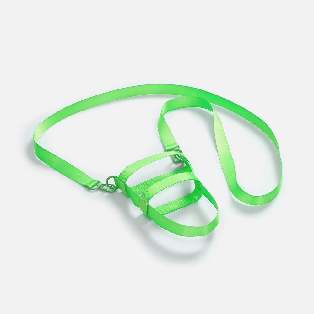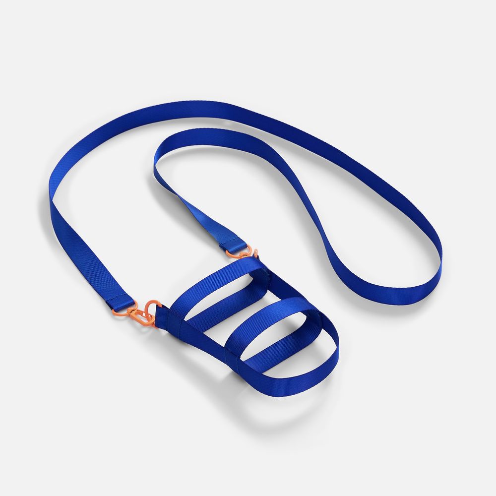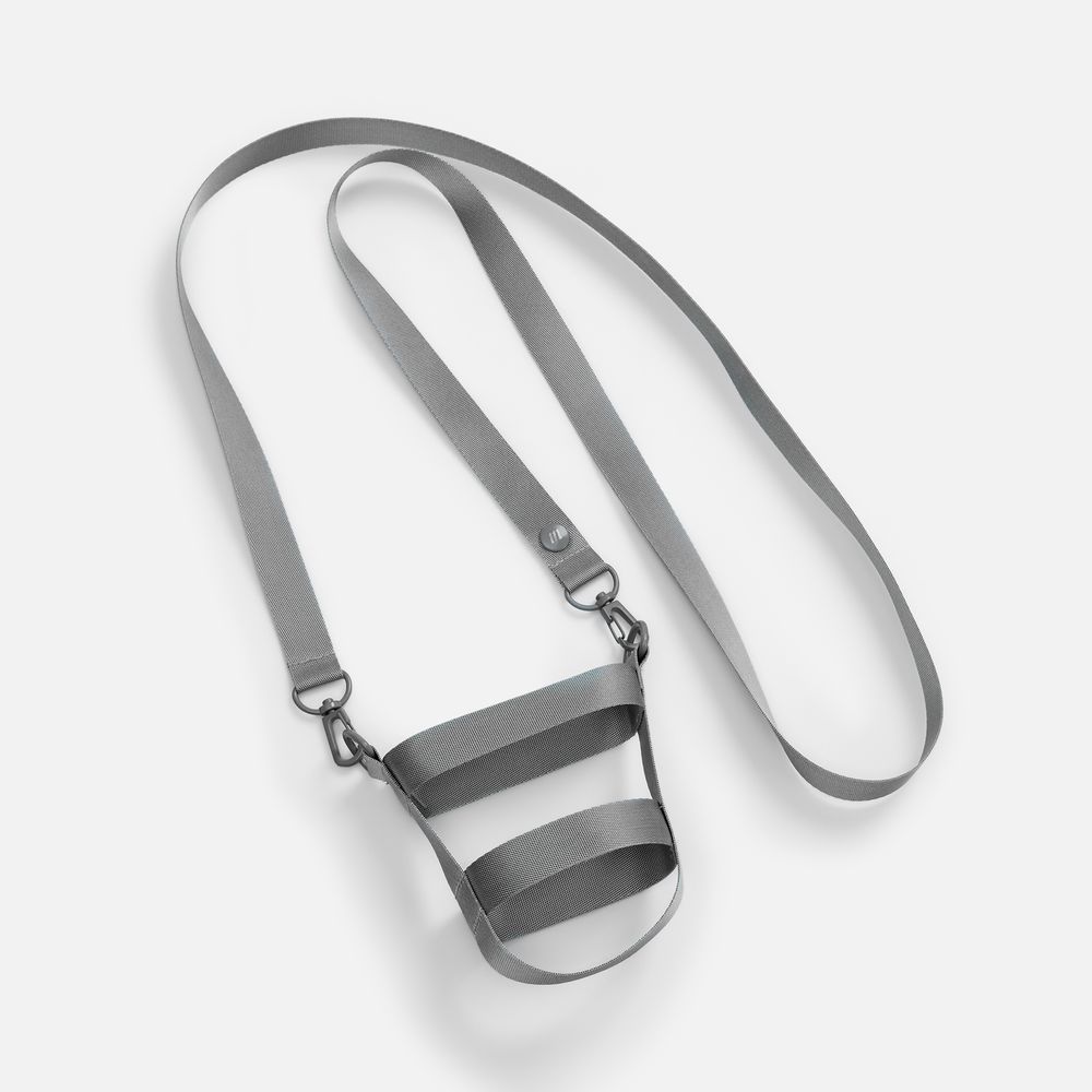 Сумка для бутылки из стропы Kesta построена по принципу конструктора из нескольких обязательных элементов: текстильных строп Fune 20 разной длины, двух застежек-карабинов и двух полуколец. Благодаря такой системе сумка легко адаптируется под конкретную бутылку — учитывает ее форму, диаметр и высоту, обеспечивая плотную посадку и комфорт при переноске.
