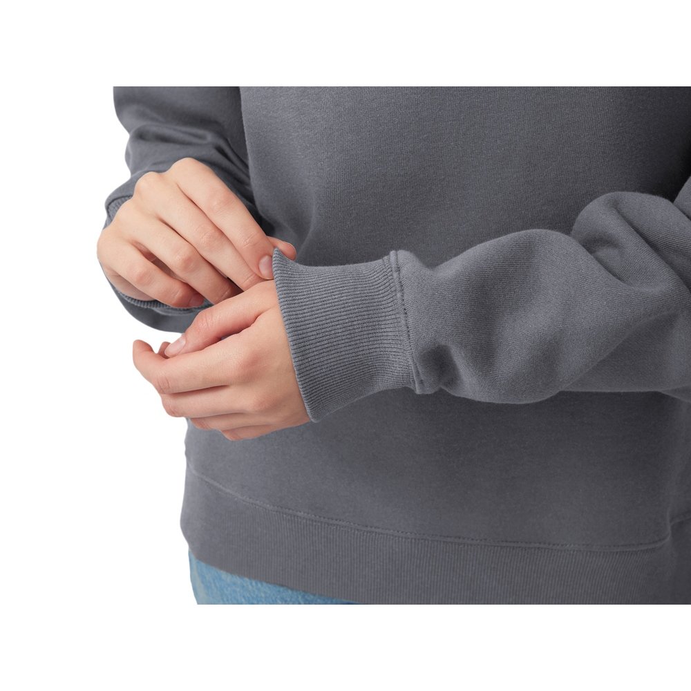 - Главная особенность этого свитшота оверсайз — необычный рукав из двух частей: верхней — реглан до середины предплечья — и нижней, которая заканчивается резинкой. Благодаря такому необычному крою свитшот сидит комфортно по фигуре. Материал — теплый смесовый флис, комфортный и мягкий, который долго носится и не требует сложного ухода. Брендируется наиболее популярными для текстиля методами. - интересный крой рукава - внутренний начес - оверсайз — модный и актуальный силуэт - резинка по горловине, рукаву и низу свитшота для комфортной посадки
