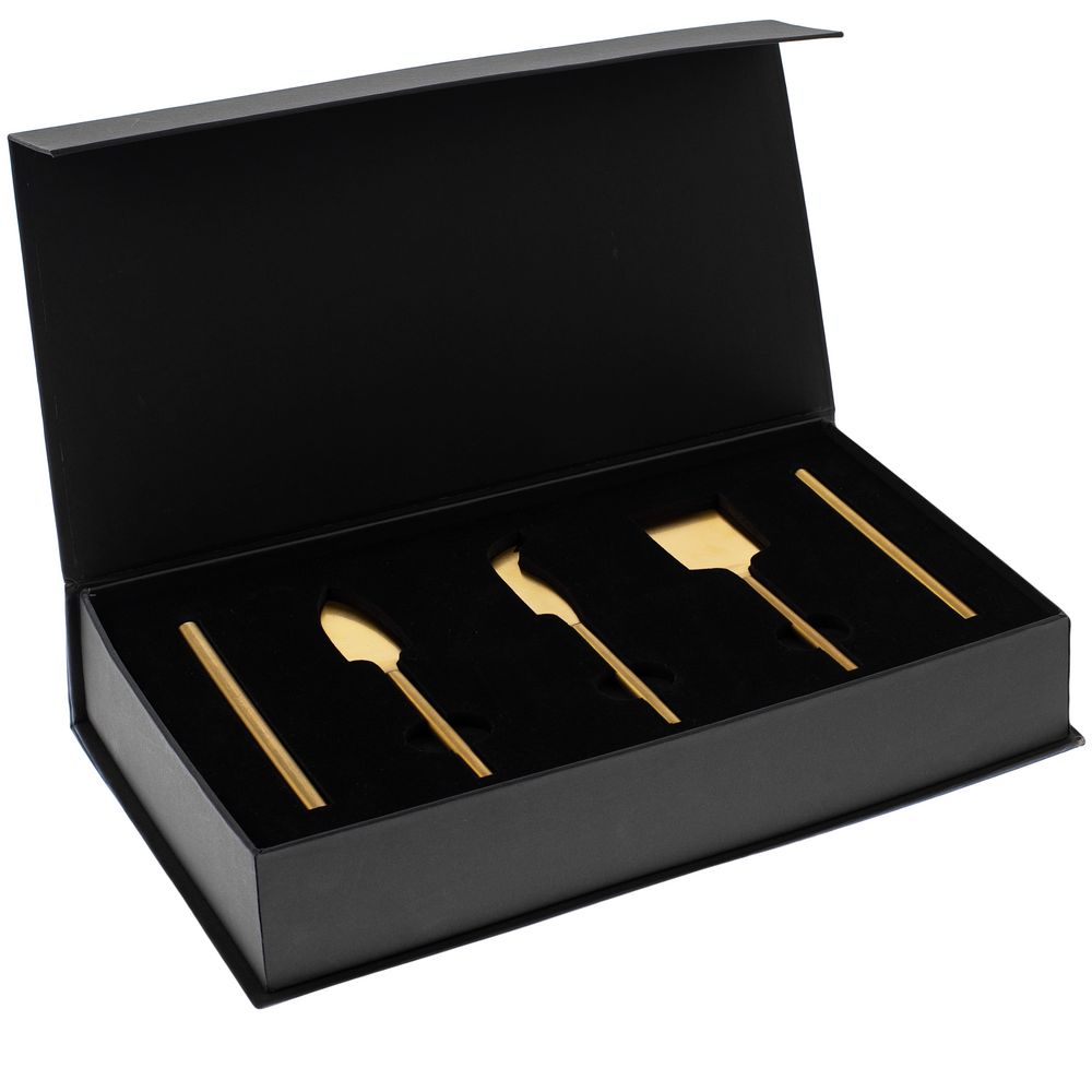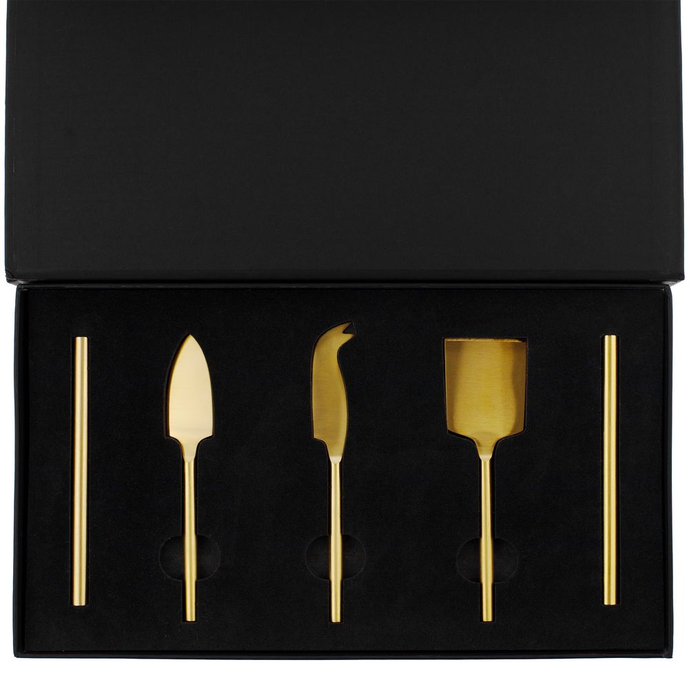 Золотистый цвет ручек и трех ножей подчеркивает статус всего набора и возвышенность самой сырной дегустации. При нарезке мягких сортов сыра особенно важно сохранить эстетичный вид ломтиков, поэтому здесь не обойтись без специальных ножей. Нож-лопатка удобен как для нарезки, так и для сервировки мягких и полутвердых сортов, а еще им можно красиво раскрошить твердый сыр. А нож с раздвоенным кончиком можно также использовать в качестве элегантной вилки. Листовидный нож для твердых сортов — это проверенная классика, которой можно доверить пармезан.
