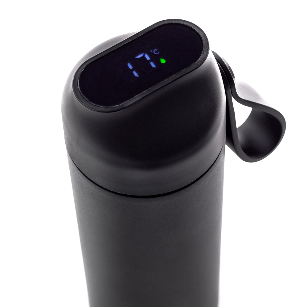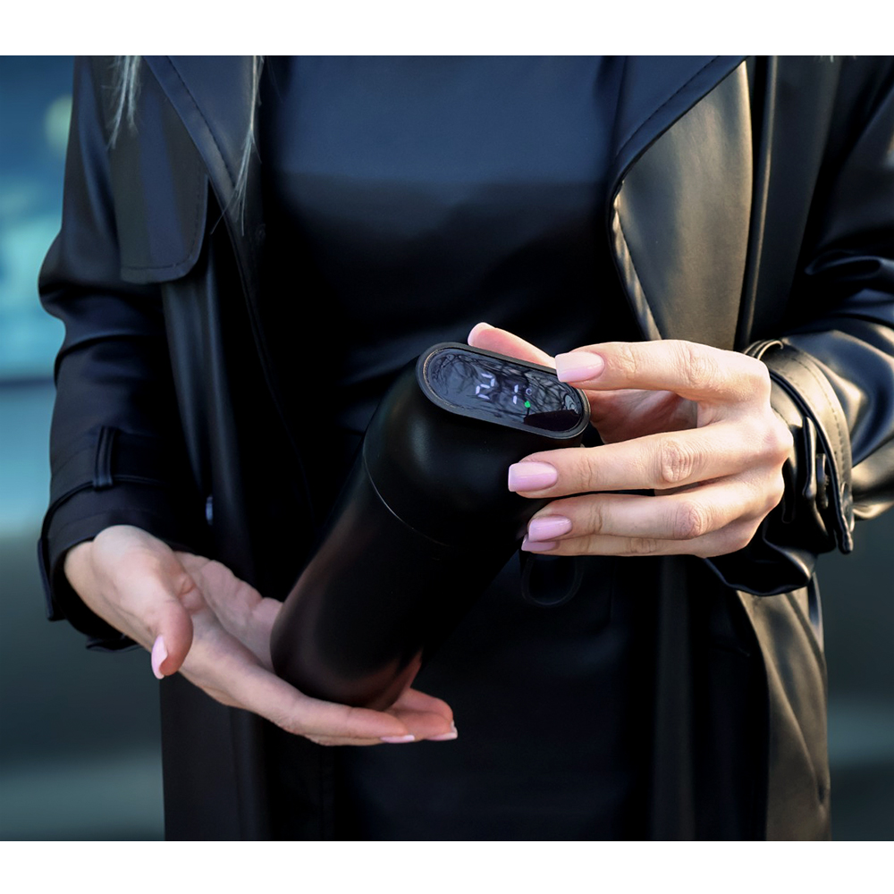 Крышка термобутылки оснащена LED-дисплеем, который показывает температуру напитка в градусах Цельсия (℃). А благодаря удобной силиконовой ручке эту бутылку легко переносить и держать, даже когда ваш напиток очень горячий.